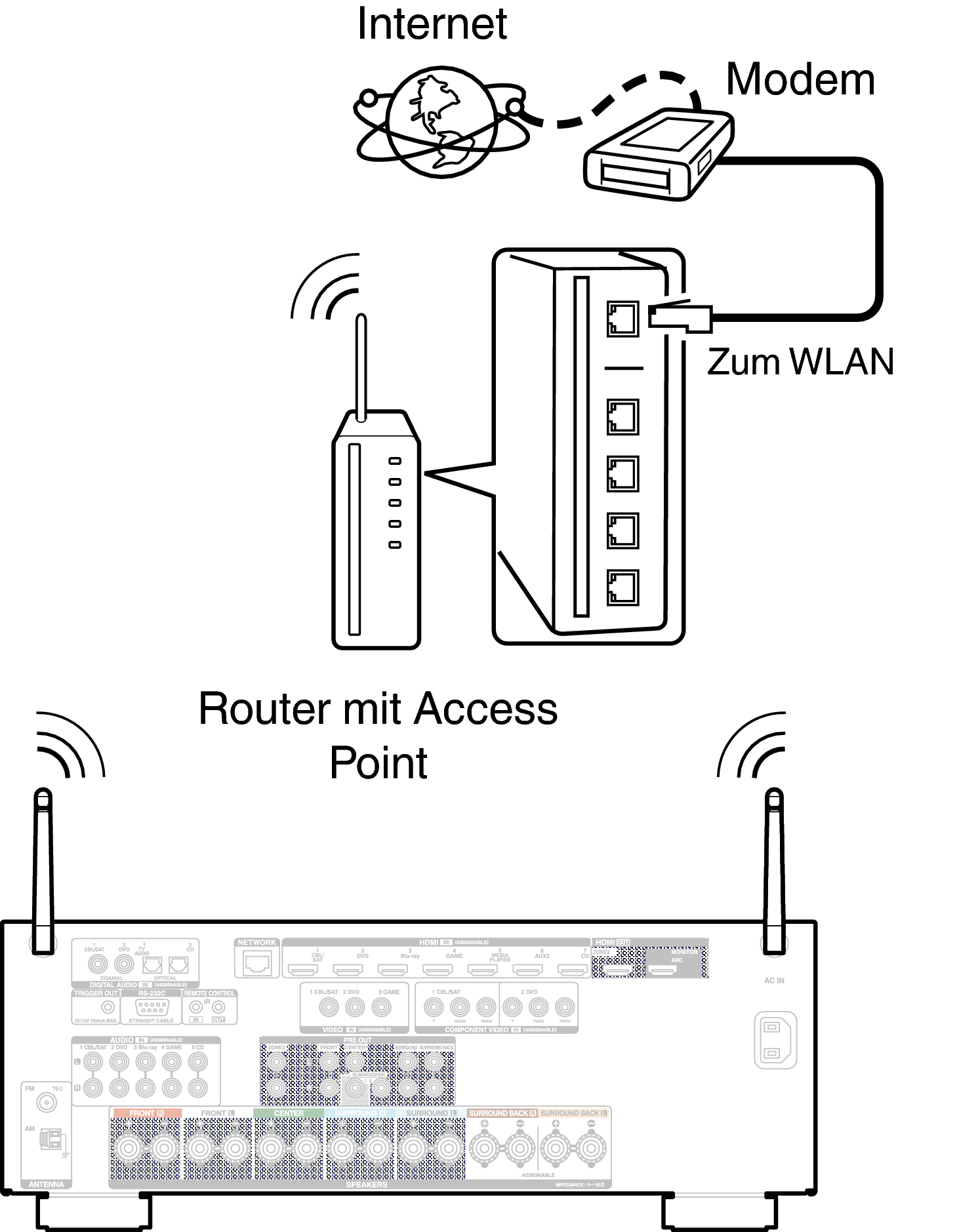 Weitere Informationen zum Anschließen eines WLAN-Routers finden Sie unter “WLAN-Konfiguration”. Link