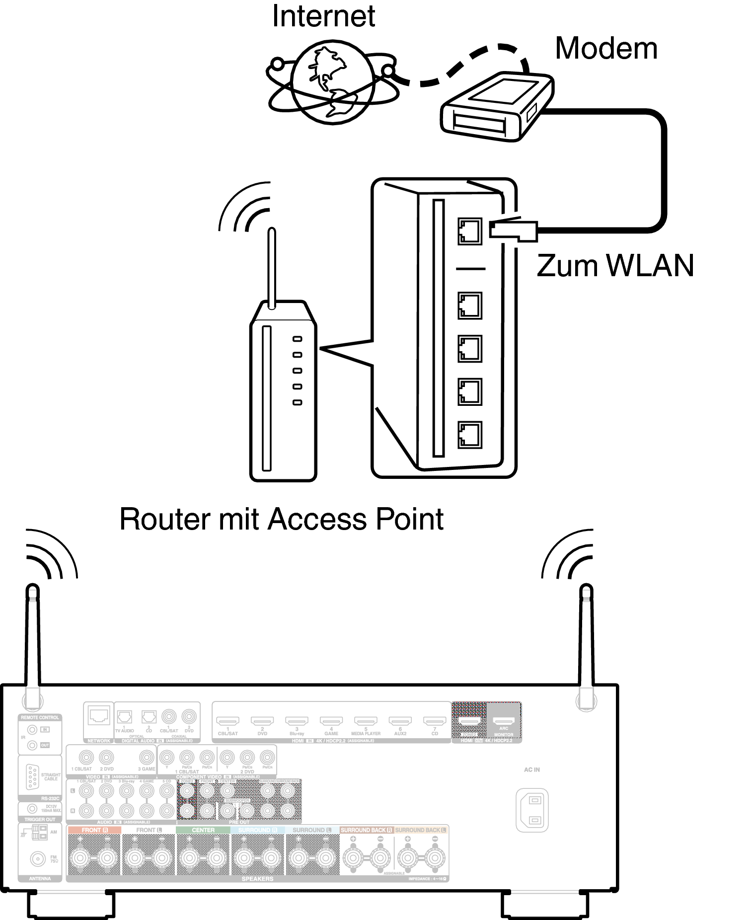 Weitere Informationen zum Anschließen eines WLAN-Routers finden Sie unter “WLAN-Konfiguration”. Link