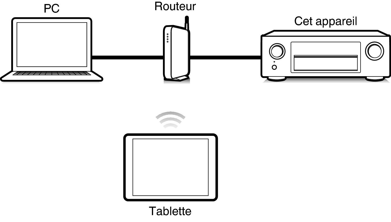 Cet appareil et l’ordinateur ou une tablette doivent être correctement connectés au réseau afin d’utiliser la fonction de contrôle Internet. (Connexion à un réseau domestique (LAN)lien)