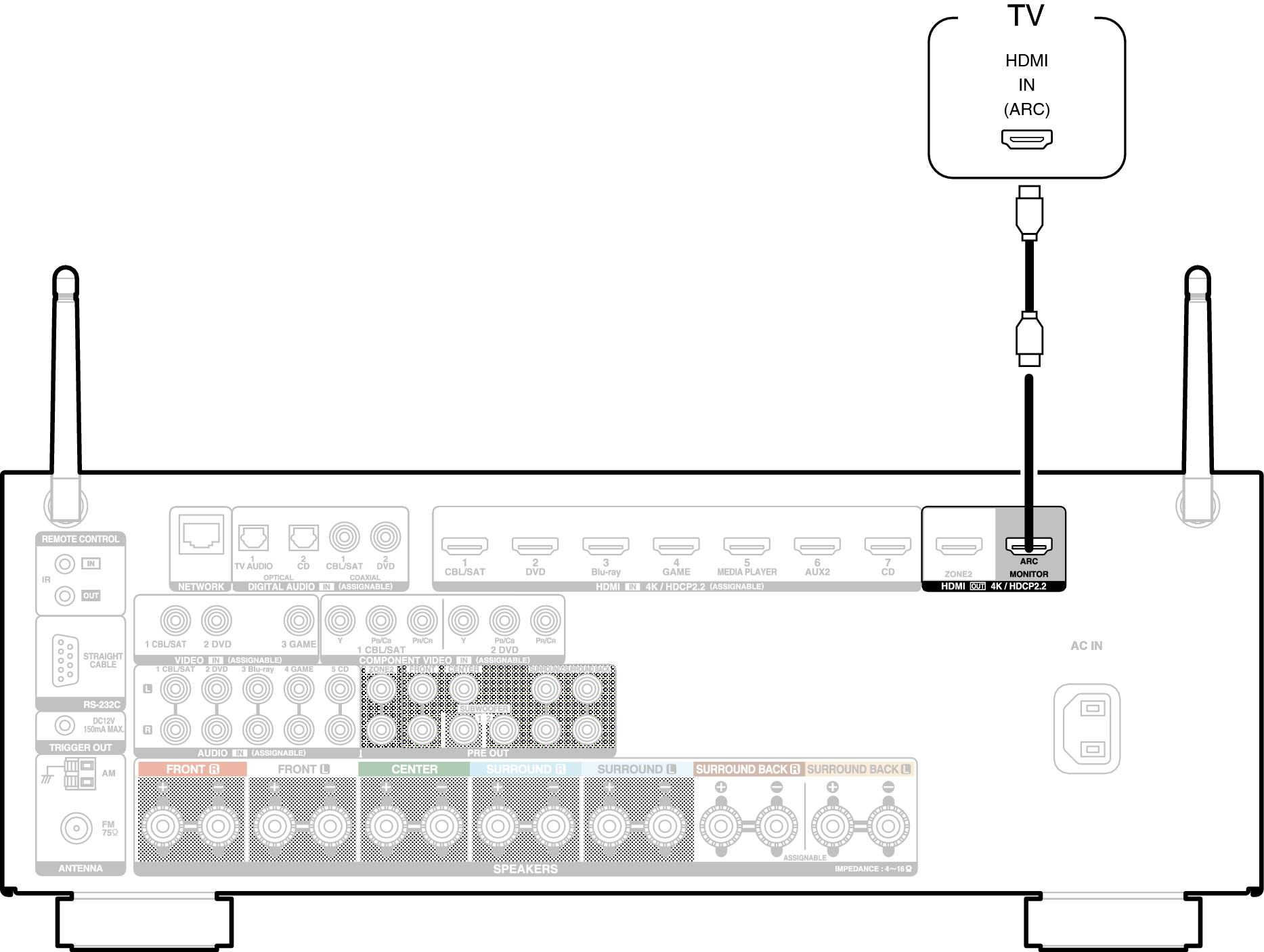 Lors de l’utilisation de la fonction ARC, connectez à la borne HDMI MONITOR.