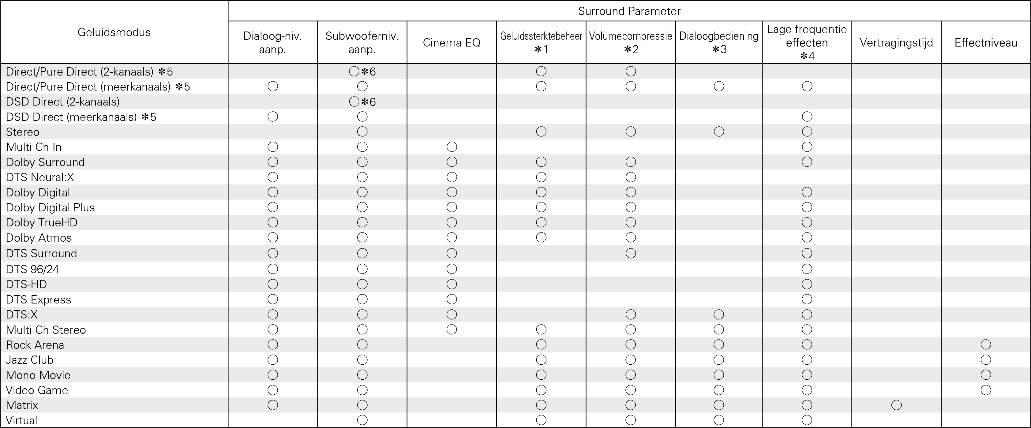 Dit item kan worden geselecteerd wanneer een Dolby Digital-, Dolby Digital Plus-, Dolby TrueHD-, Dolby Atmos-, DTS:X- of DTS-signaal wordt weergegeven.