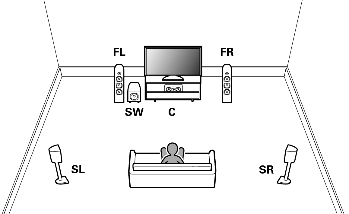 Dit systeem speelt 5.1-kanaals bronnen af. U kunt de Bi-amp aansluiting gebruiken voor de voorluidsprekers. Bi-Amp aansluiting is een methode voor het aansluiten van afzonderlijke versterkers op de tweeter- en de wooferaansluiting van een luidspreker die dubbele versterking ondersteunt. Via deze aansluiting is EMF (stroom die wordt geretourneerd zonder te worden uitgevoerd) achteruit mogelijk vanaf de woofer voor stroming in de tweeter zonder de geluidskwaliteit te beïnvloeden, produceert een hogere geluidskwaliteit.