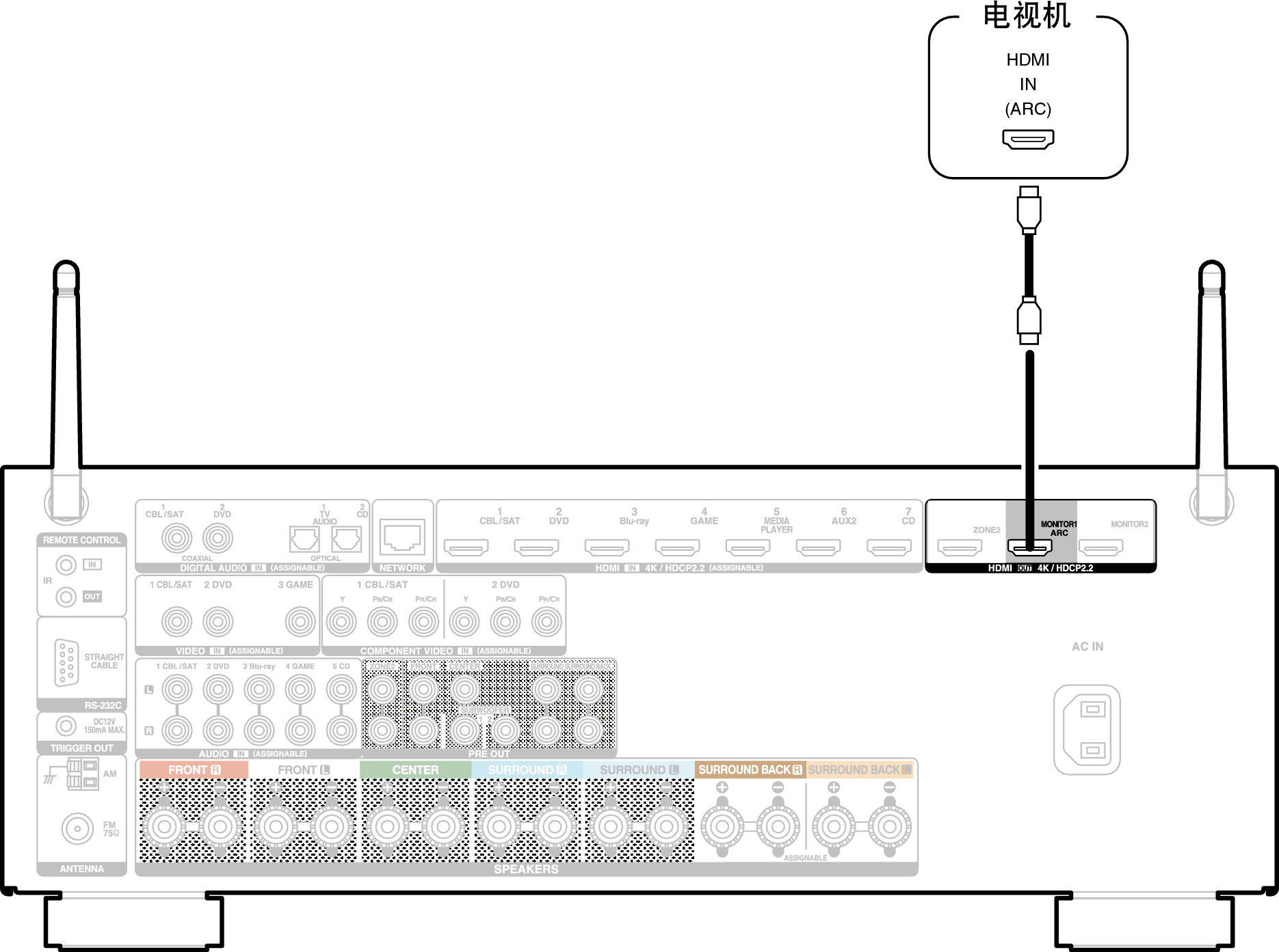 使用ARC功能时,连接到HDMI MONITOR 1端子。