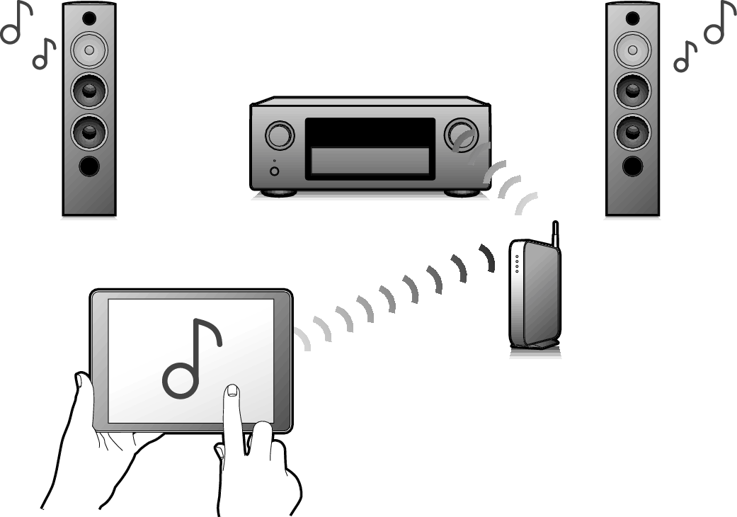 Sie können Musik auch einfach wiedergeben, indem Sie eine WLAN-Verbindung zu Ihrem Smartphone, Tablet-PC, PC usw. herstellen.