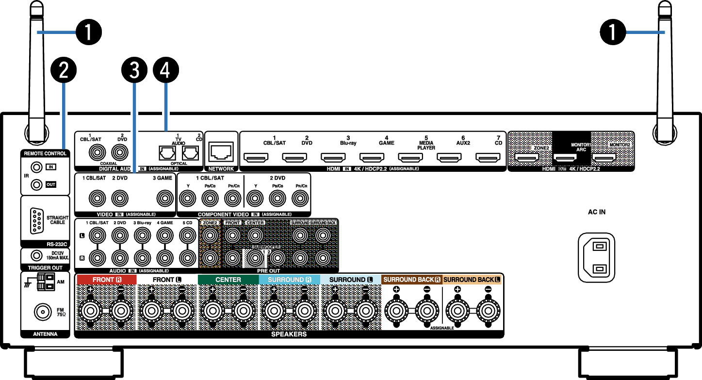 Utilisées pour connecter des récepteurs/transmetteurs infrarouges capables de commander cet appareil et les appareils externes depuis une autre pièce. lien