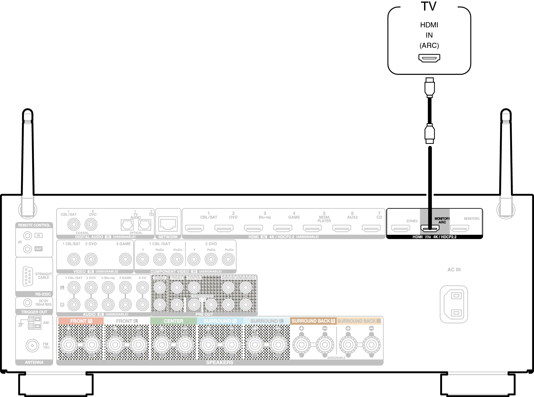 Lors de l’utilisation de la fonction ARC, connectez à la borne HDMI MONITOR 1.