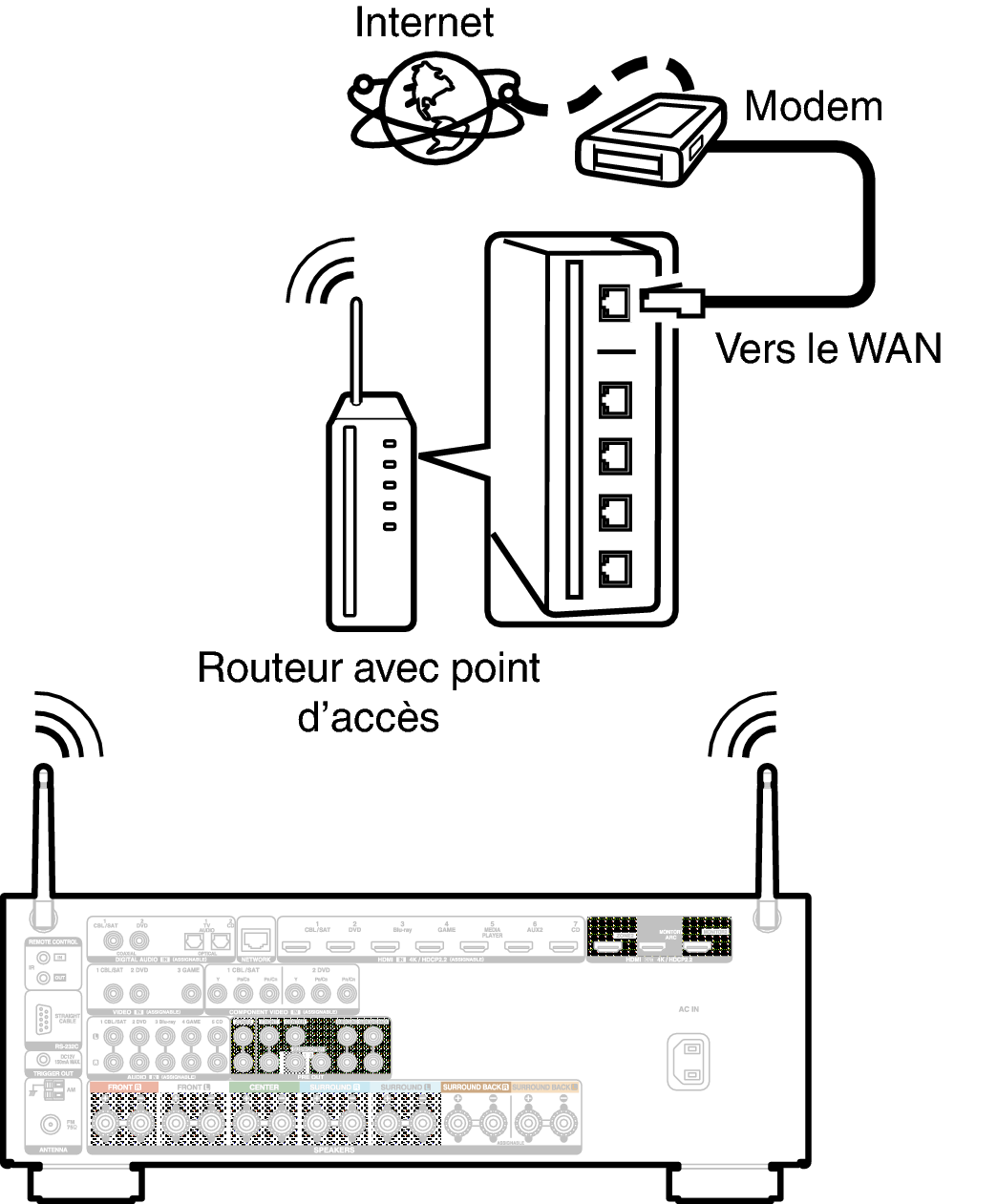 Ne connectez pas une borne NETWORK directement au port LAN/à la borne Ethernet de votre ordinateur.