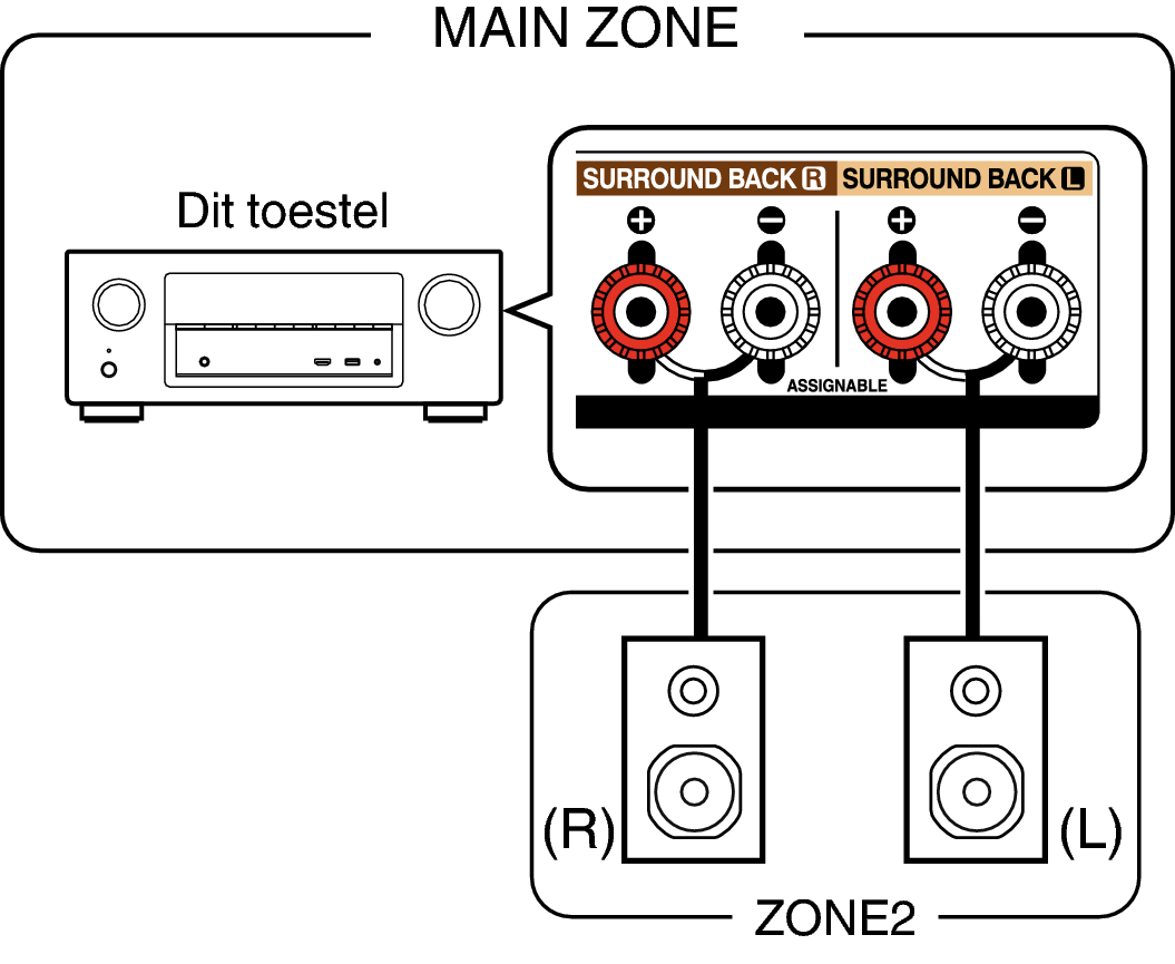 Wanneer “Toewijsmodus” is ingesteld op “ZONE2” in het menu, wordt ZONE2-audio uitgevoerd vanaf de SURROUND BACK-luidsprekeraansluiting. koppeling