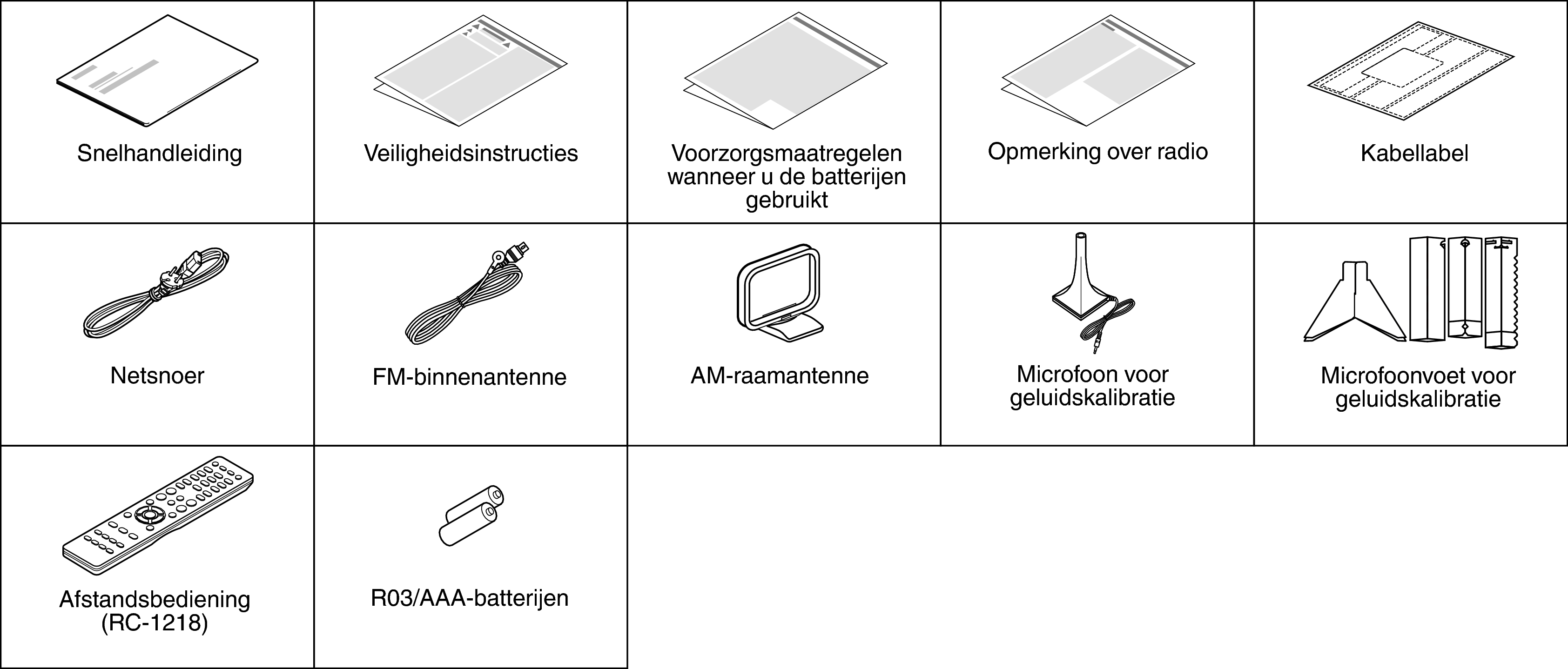 Controleer of bij dit product de volgende onderdelen zijn meegeleverd.