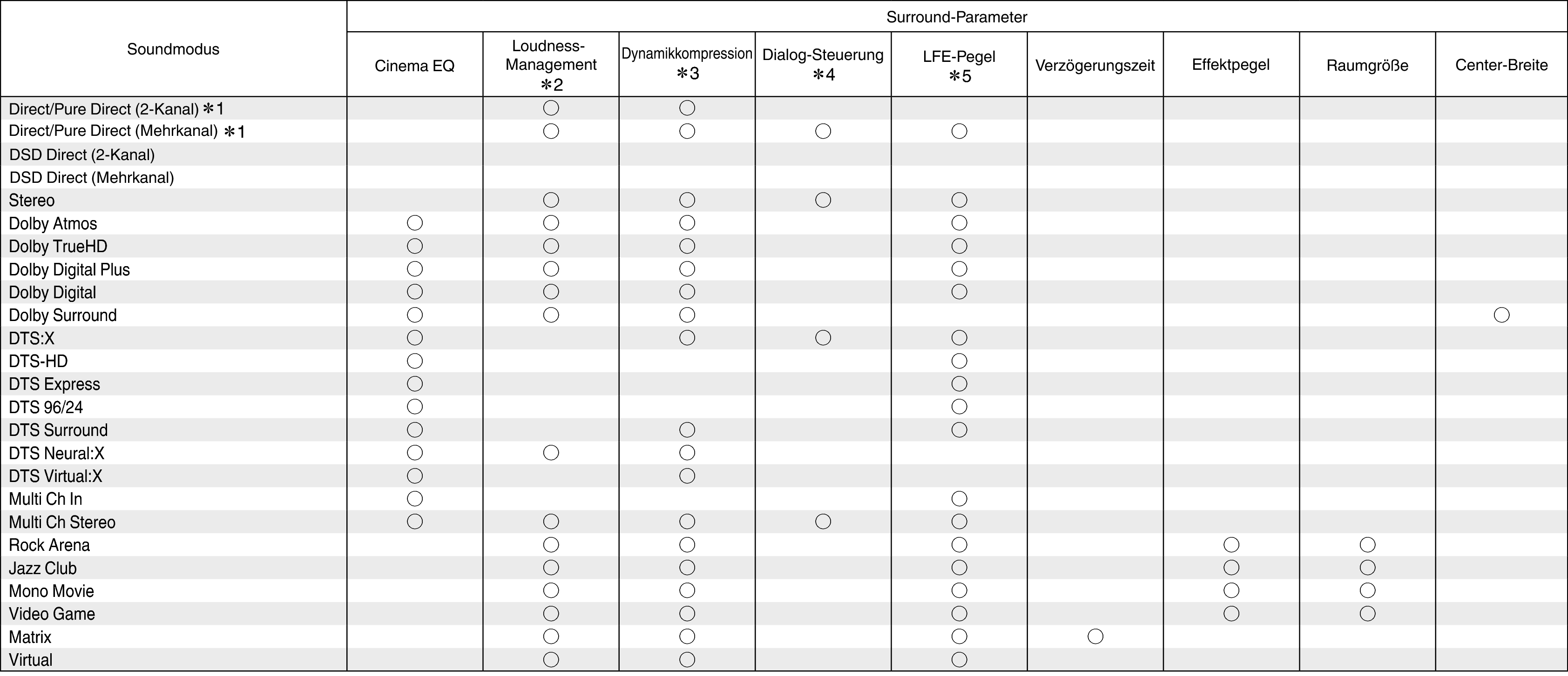 ∗1 - ∗5: Klangmodi und Surround-ParameterLink