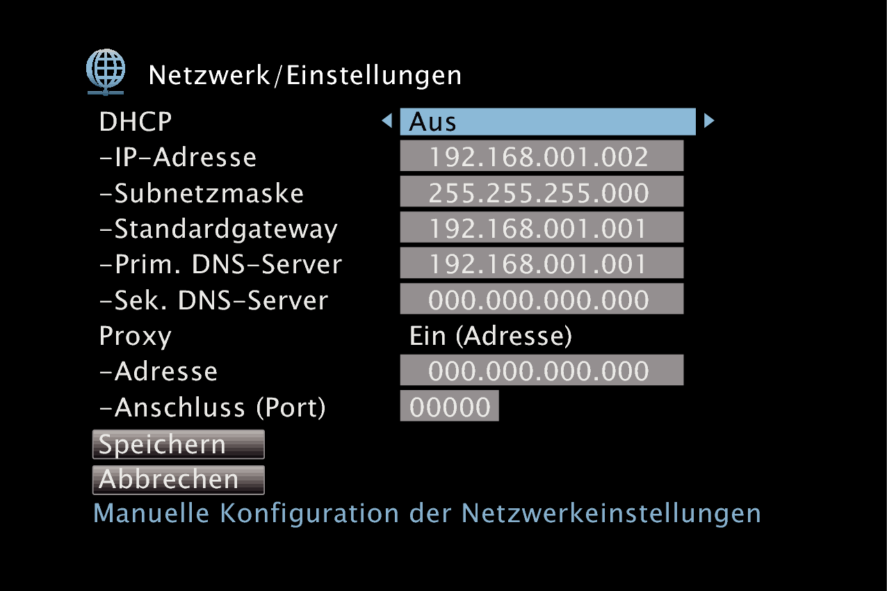 Die Netzwerkeinstellungen werden manuell vorgenommen. |
