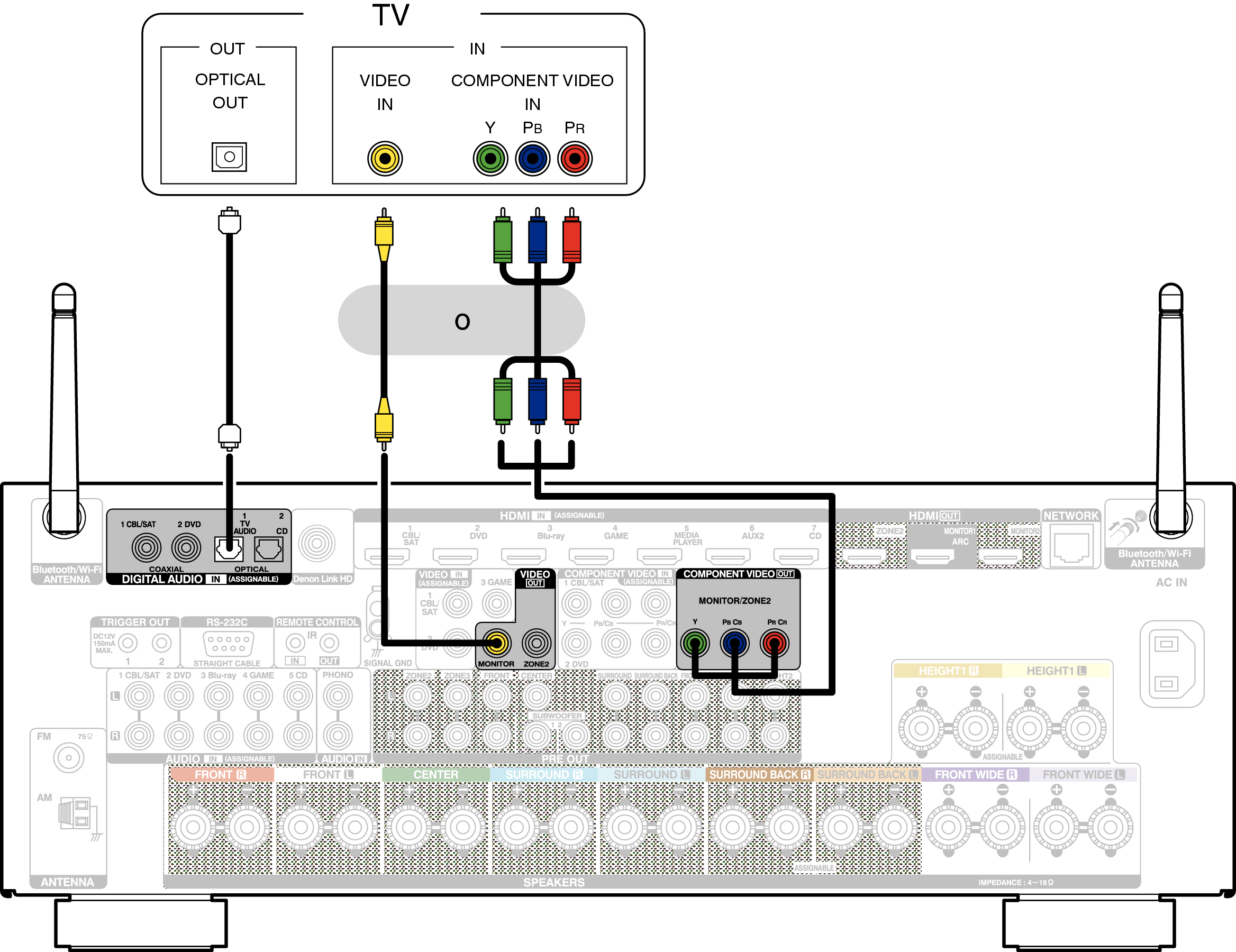 Utilice un cable de vídeo por componentes o de vídeo para conectar el TV a esta unidad.