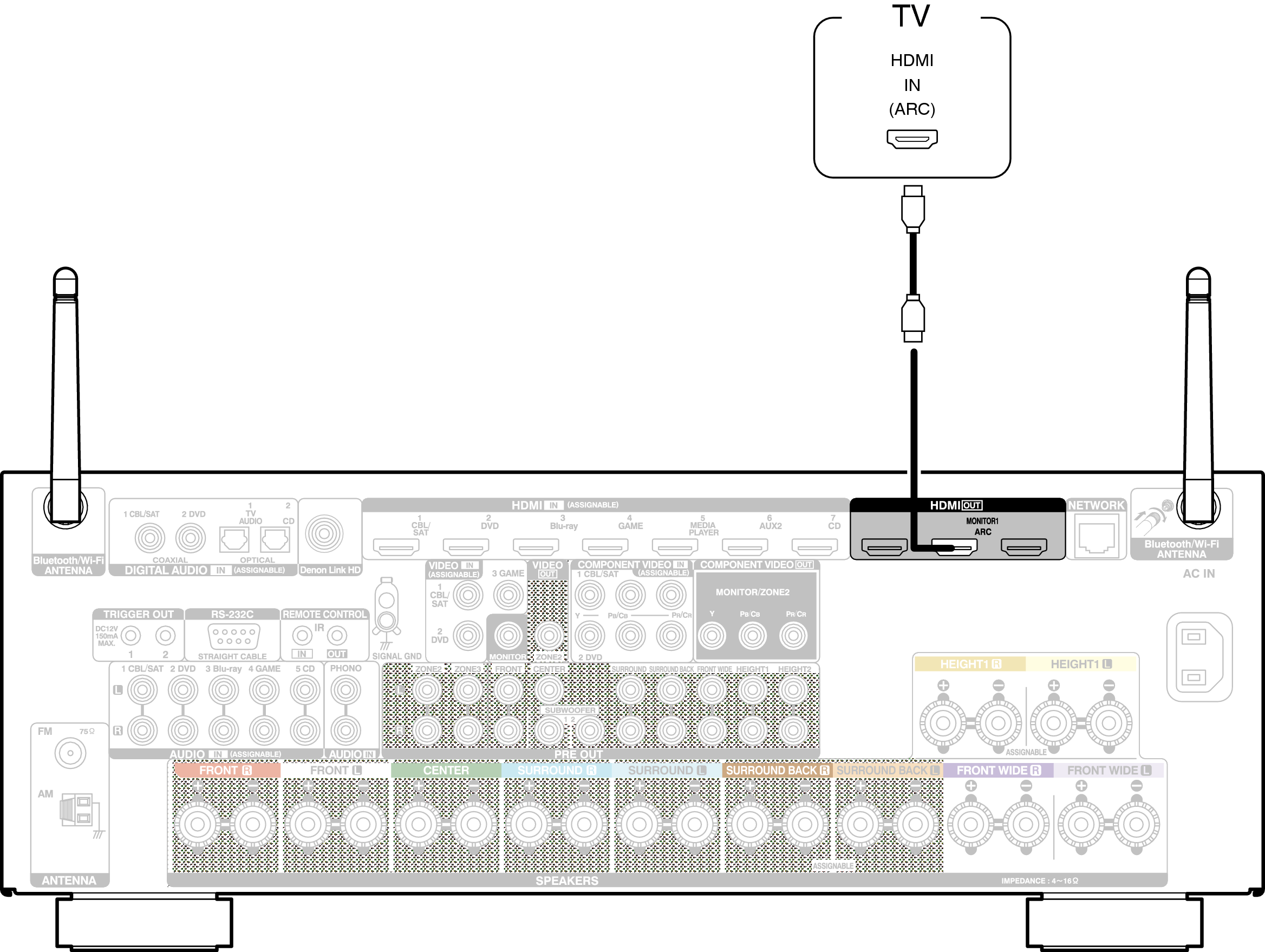 Gebruik een HDMI-kabel voor het aansluiten van een tv die compatibel is met de ARC-functie, op dit toestel.