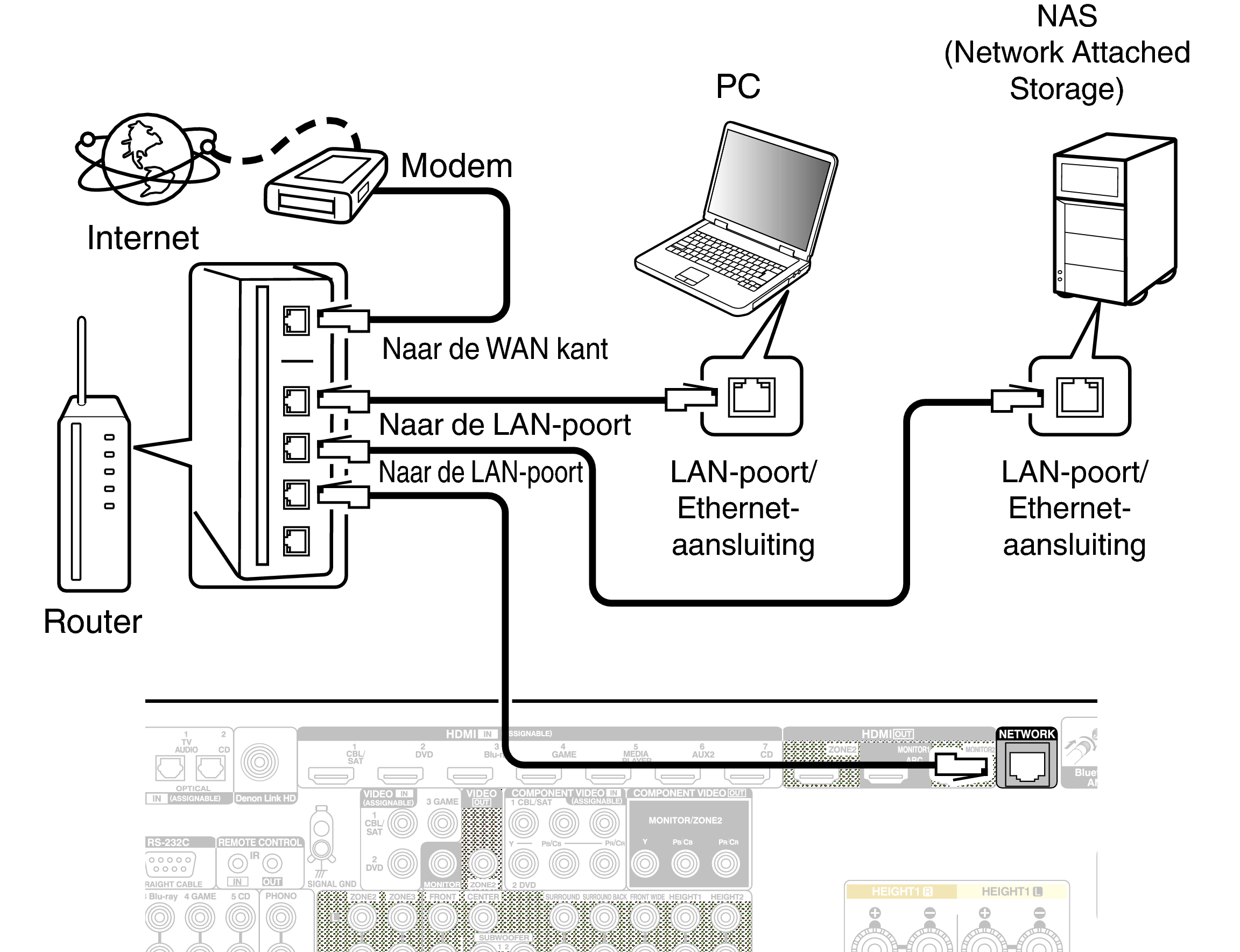 Om een verbinding te maken via een bekabeld LAN, gebruikt u een LAN-kabel voor het aansluiten van de router op dit toestel, zoals weergegeven in de onderstaande afbeelding.