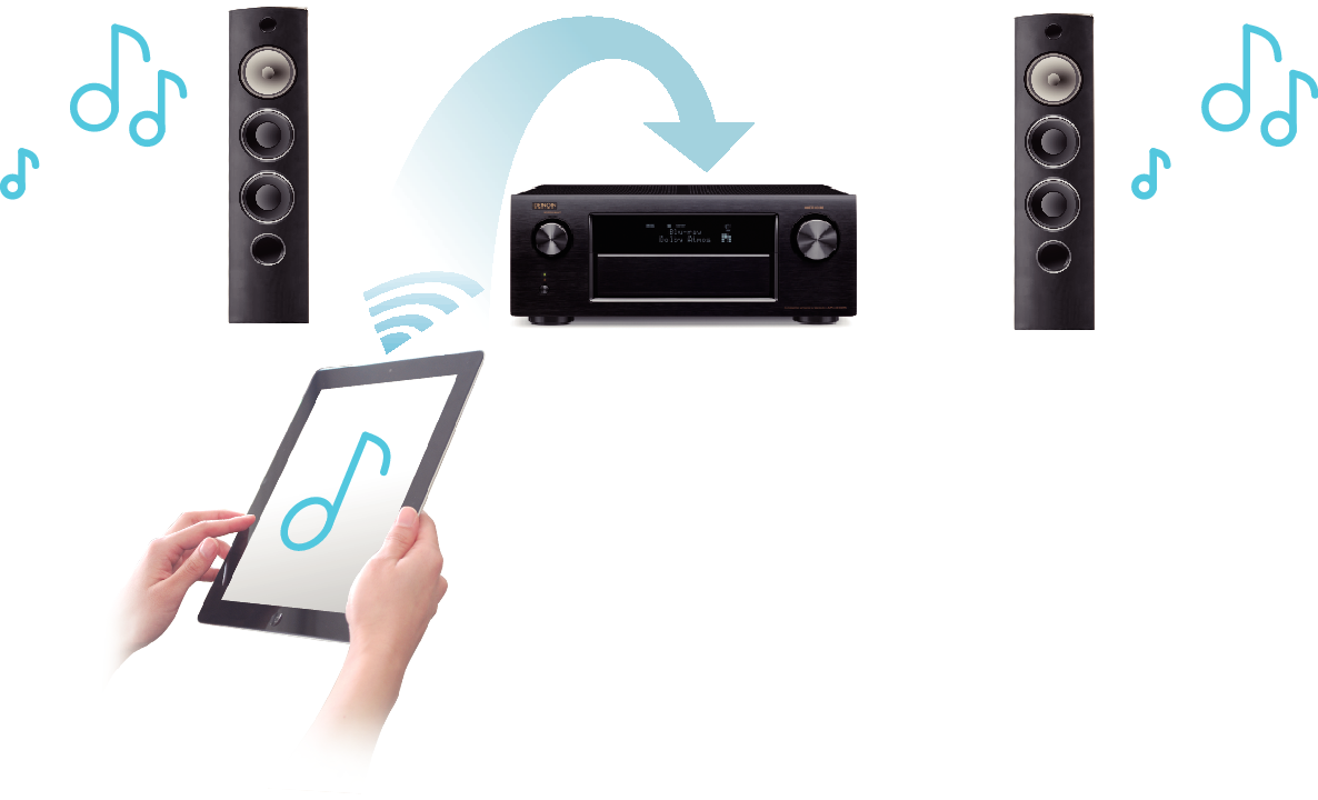 “Denon Remote App” to aplikacja umożliwiająca wykonanie podstawowych czynności, na przykład włączenie/wyłączenie urządzenia, sterowanie głośnością oraz zmiana źródła dźwięki za pomocą urządzeń iPad, iPhone oraz smartfonów i tabletów z systemem Android.