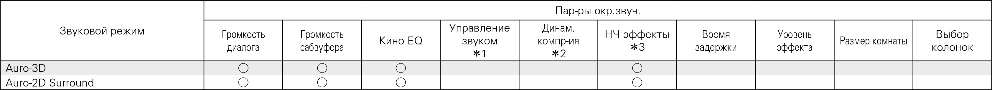 Этот параметр может быть настроен, если входной сигнал не содержит сигнал Auro-3D или если входной сигнал Auro-3D не содержит фронтальные верхние каналы.