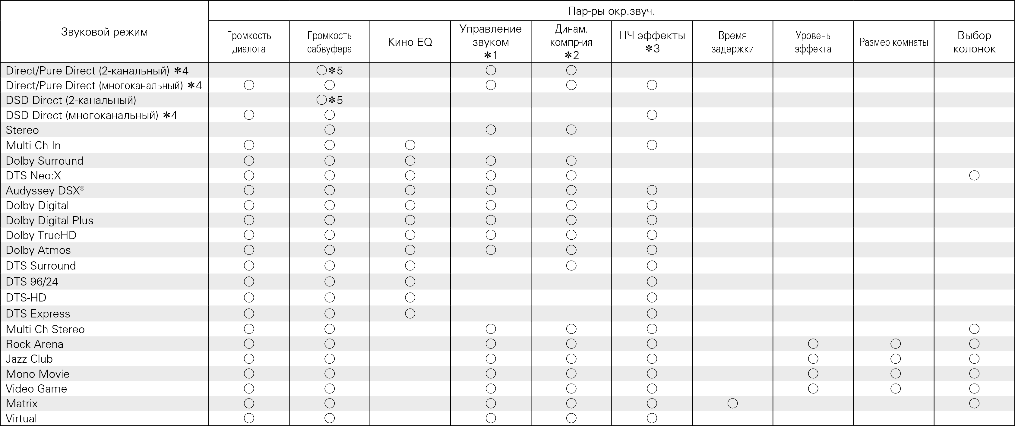 Режимы звука и параметры объемного звука