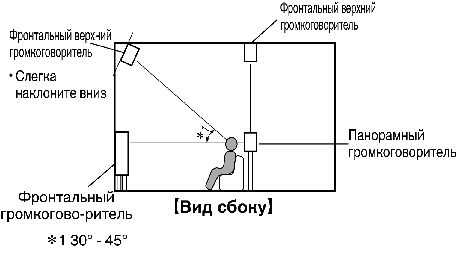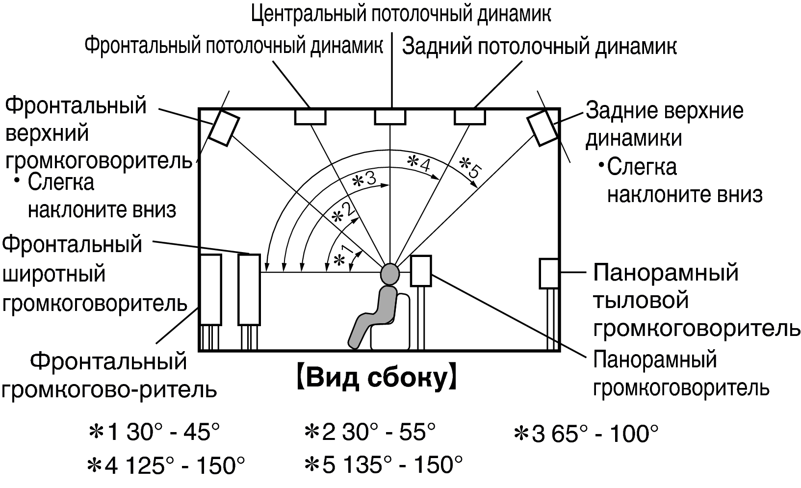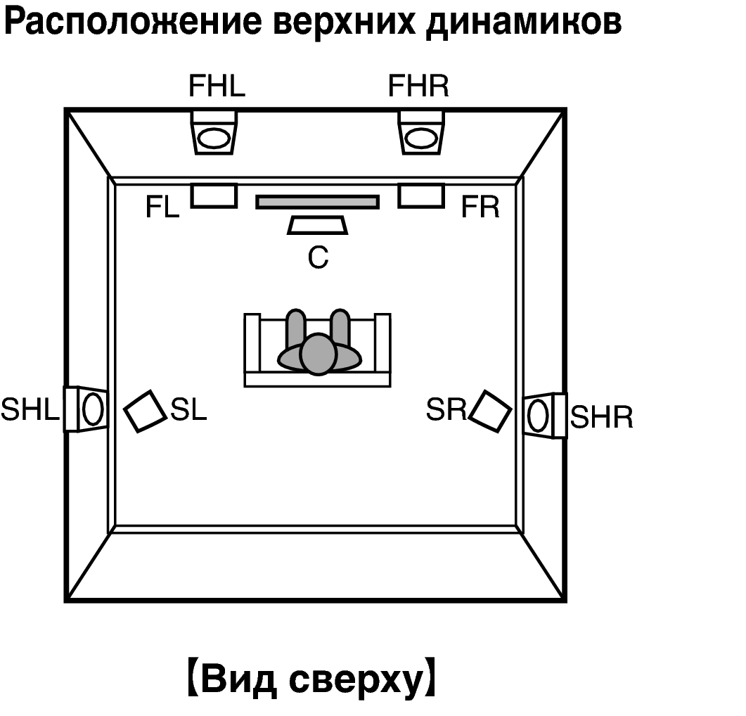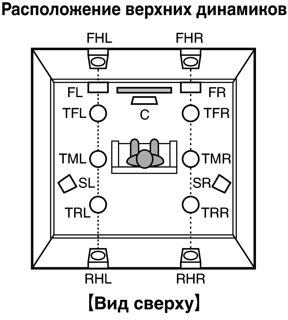 Расположение, включая верхние динамики и потолочные динамики