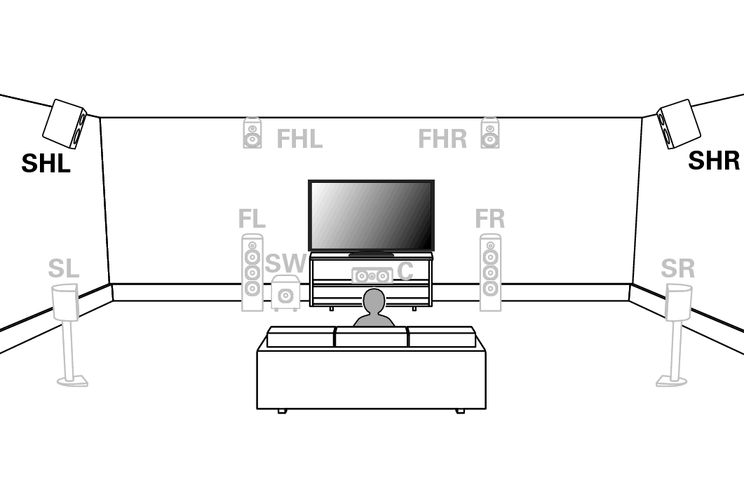 SHL/SHR (верхние динамики объемного звучания, левый/правый): |