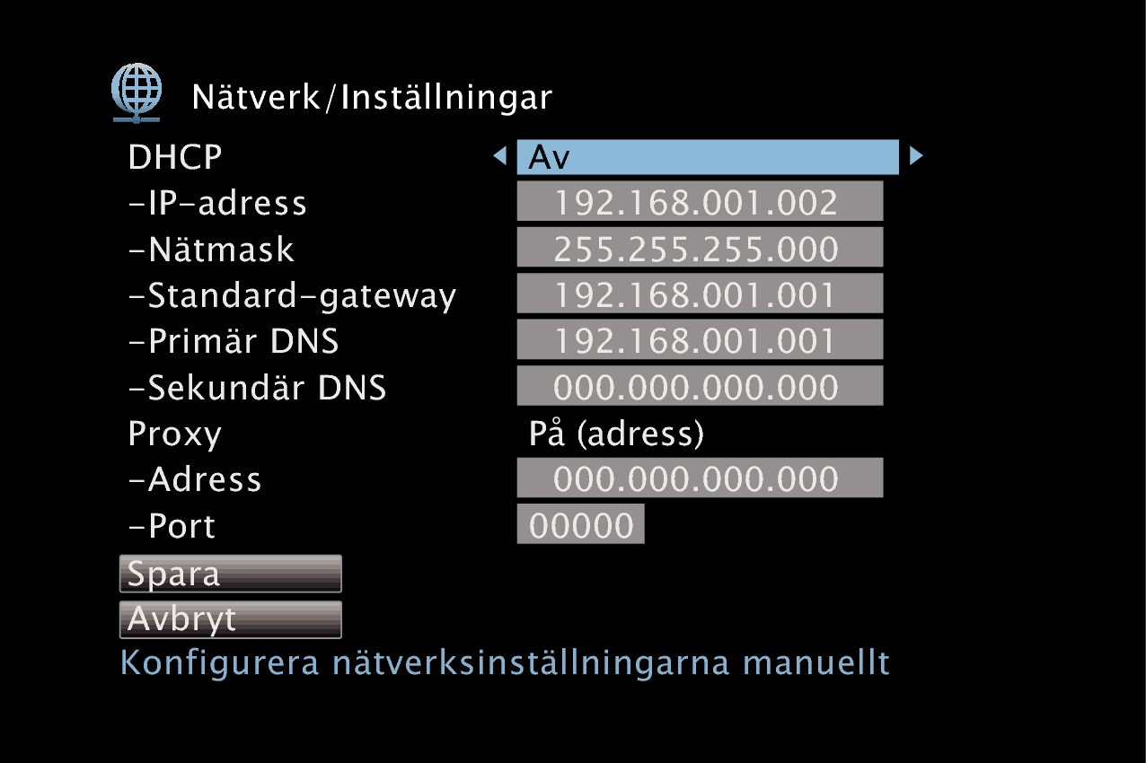 Om du är ansluten till en nätport (router) ska du mata in dess IP-adress.