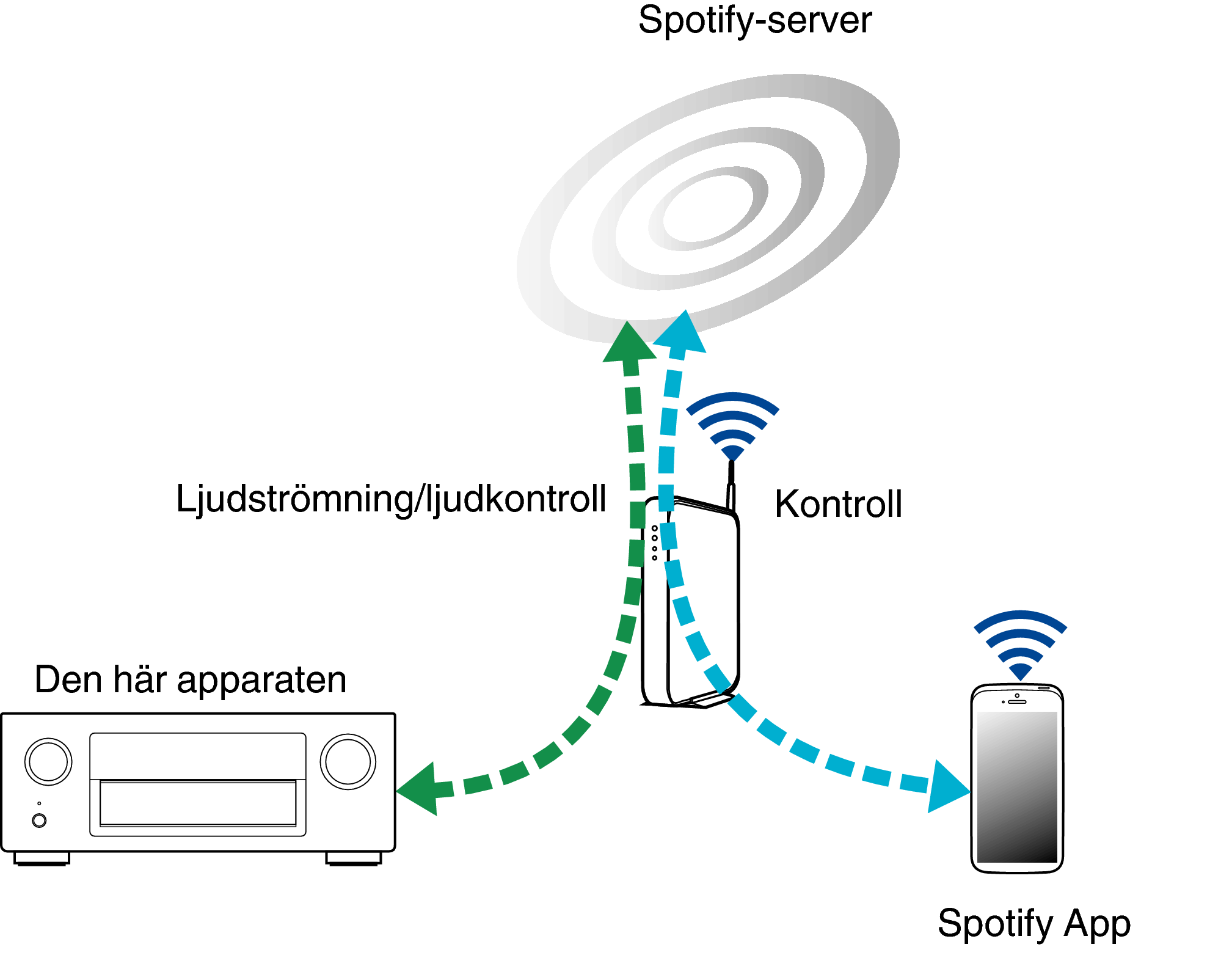 Spotify är världens mest populära streamingtjänst. Om du prenumererar på Spotify Premium kan du kontrollera din nya högtalare med din mobiltelefon eller surfplatta. Eftersom Spotify är inbyggt i högtalaren kan du fortfarande svara i telefon eller använda andra appar. Musiken stannar aldrig.