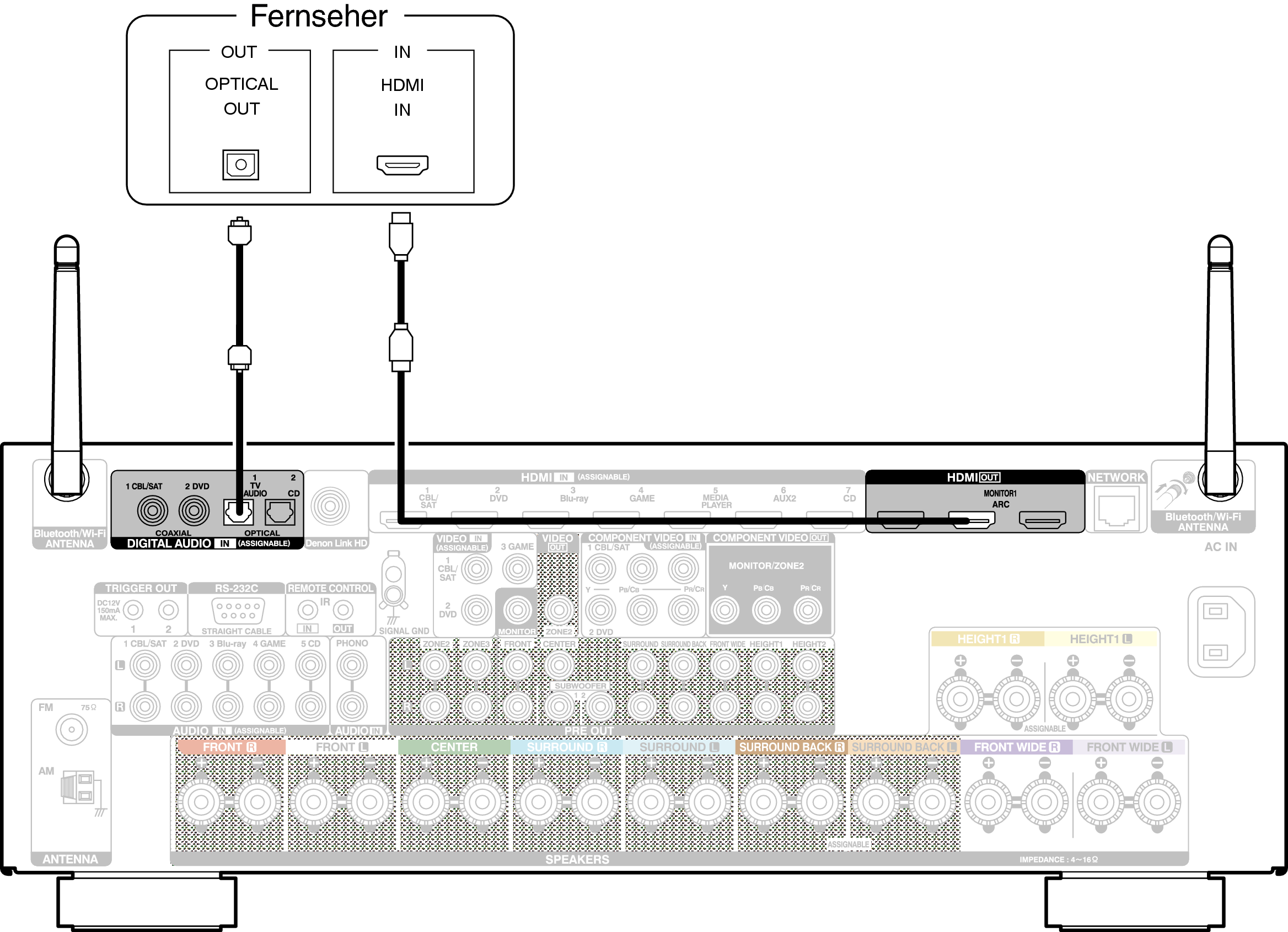 Verwenden Sie ein HDMI-Kabel, um den Fernseher an dieses Gerät anzuschließen.