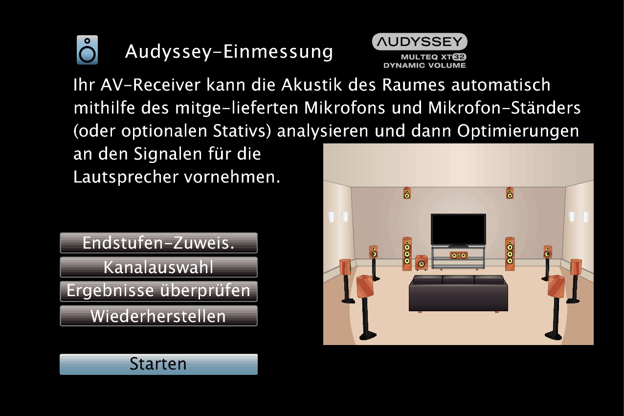 Verfahren für Lautsprechereinstellungen (Audyssey® -Einmessung)