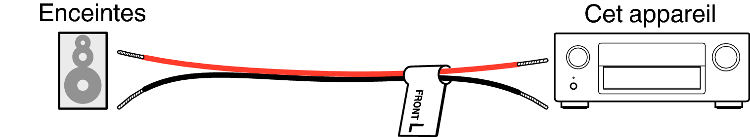 Puis, effectuez la connexion pour que la couleur de la borne d’enceinte corresponde à l’étiquette du câble d’enceinte.