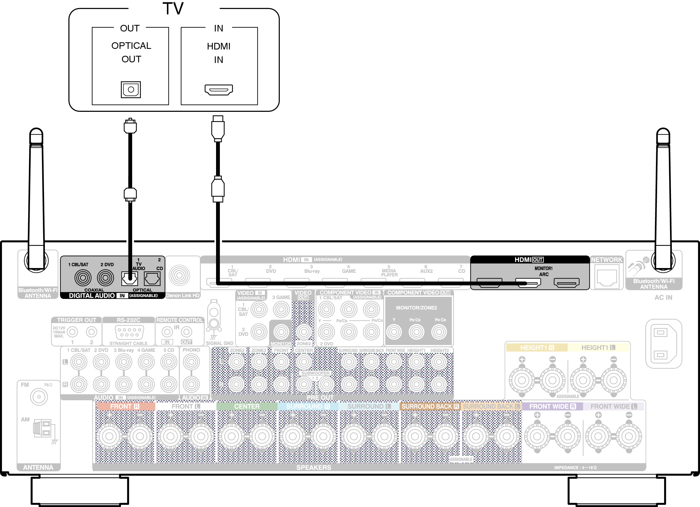Pour écouter l’audio du téléviseur sur cet appareil, utilisez le câble optique pour connecter le téléviseur à cet appareil.