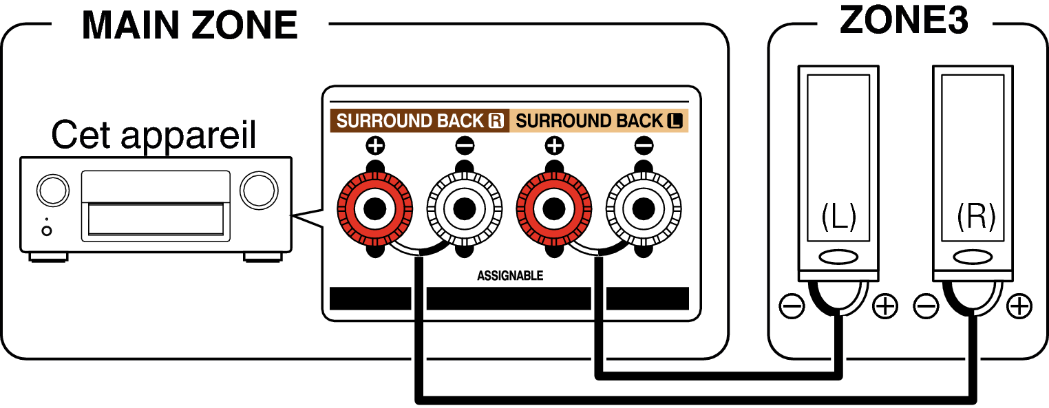 Les signaux audio des bornes de sortie audio des ZONE2 et ZONE3 de cet appareil sont émis vers les amplificateurs des ZONE2 et ZONE3 et sont lus sur ces mêmes amplificateurs.