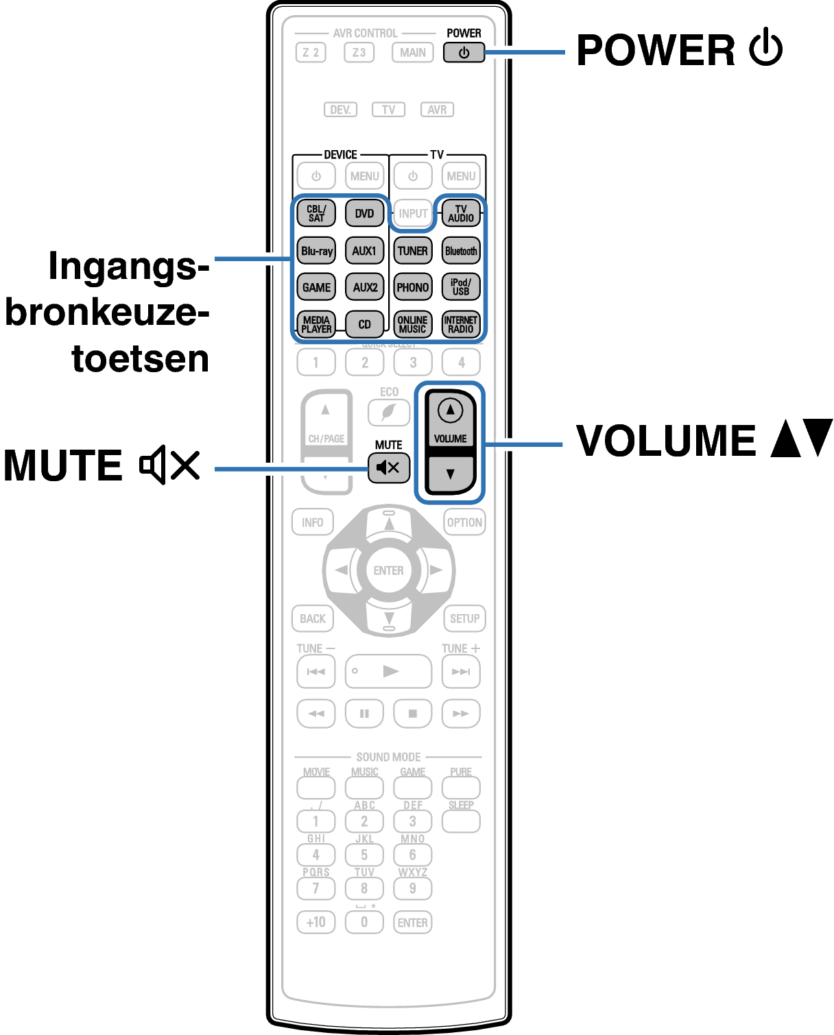 Toetsen op de afstandsbediening die worden gebruikt voor deze bewerking