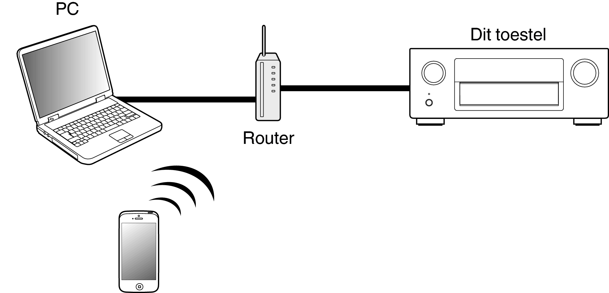 Muziekbestanden die op uw iPhone, iPod touch, iPad of iTunes zijn opgeslagen, kunnen worden opgespeeld op dit toestel via het netwerk.