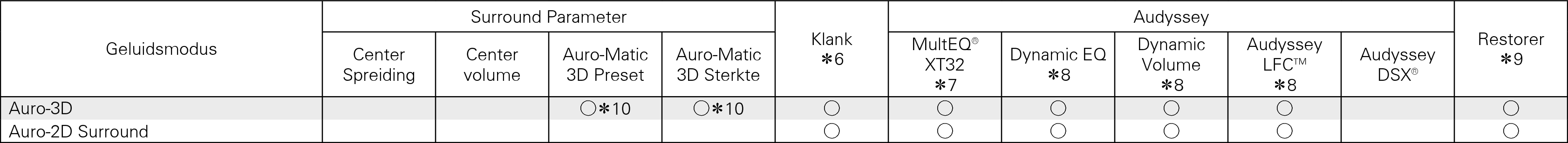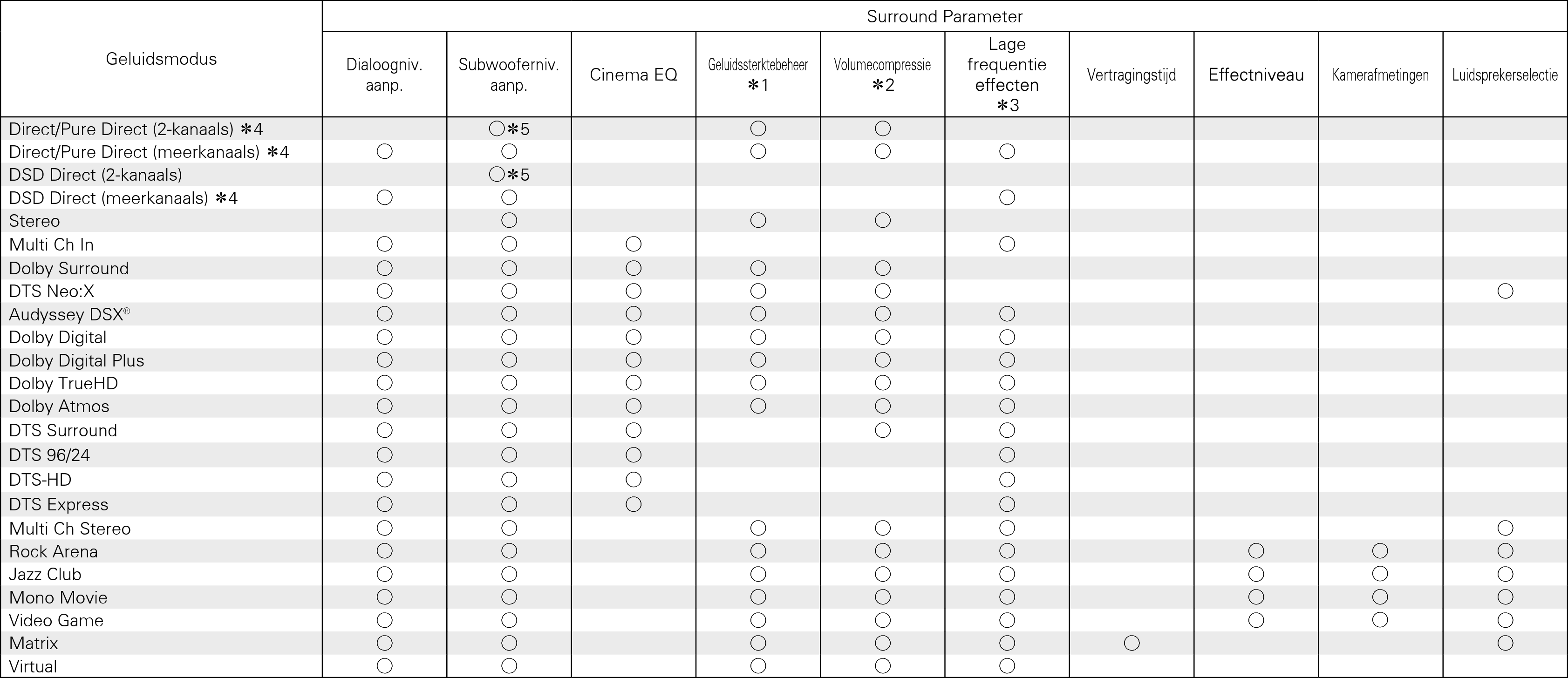 ∗1 - ∗3, ∗6 - ∗10 : Geluidsmodi en surround-parameterskoppeling