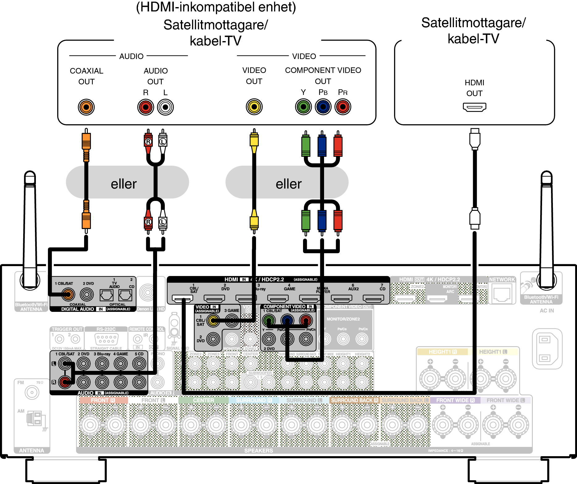 I den här beskrivningen används en anslutning till en satellitmottagare/kabel-TV STB som exempel.