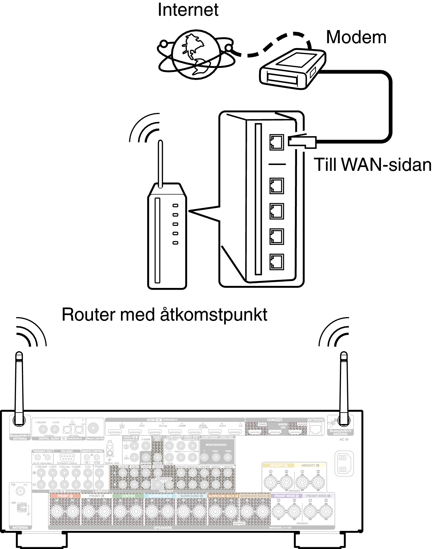 Router-typer som kan användas beror på din Internet-leverantör. Kontakta din Internet-leverantör eller en datoraffär för närmare anvisningar.