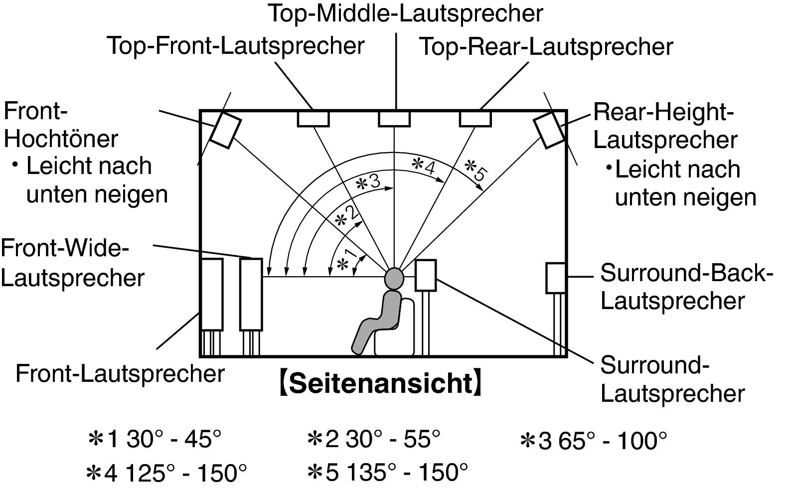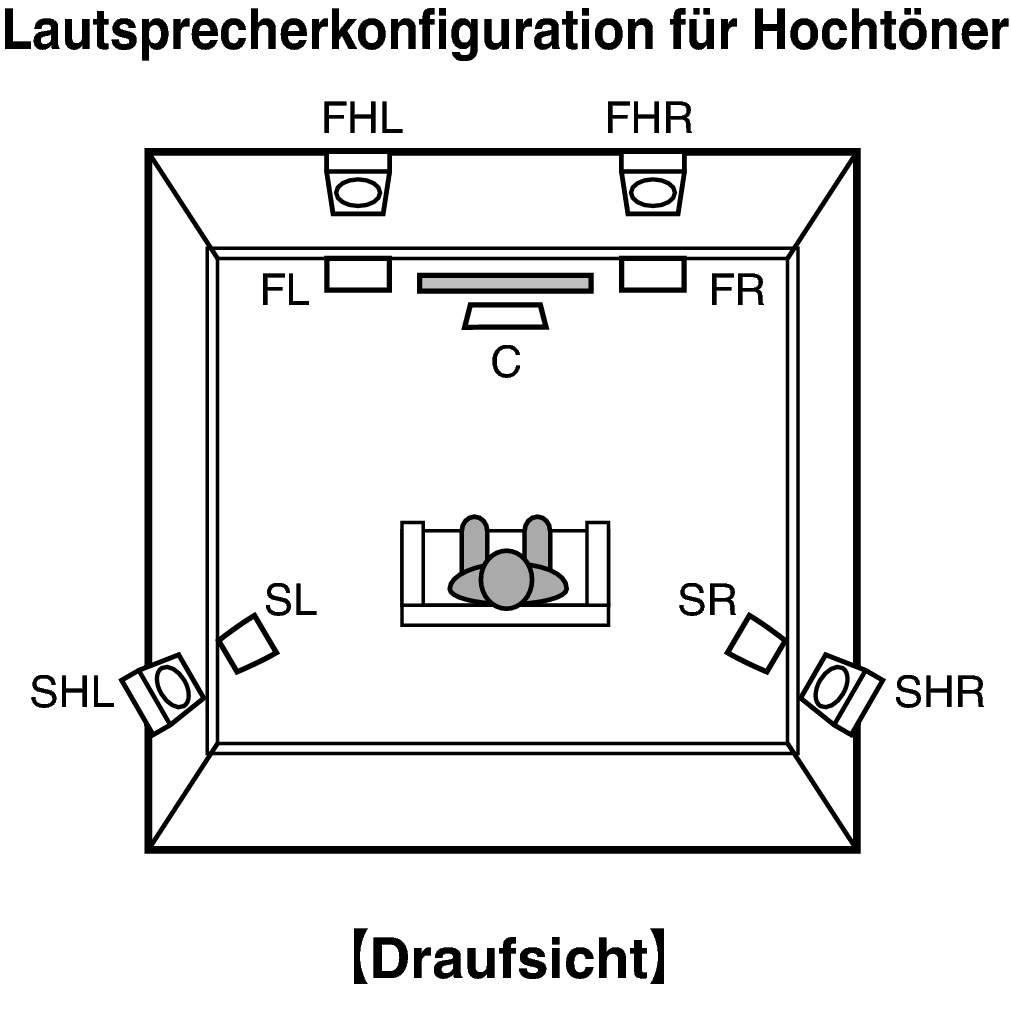 Wenn Sie Audyssey DSX® verwenden, installieren Sie Fronthochtöner oder Front-Wide-Lautsprecher.