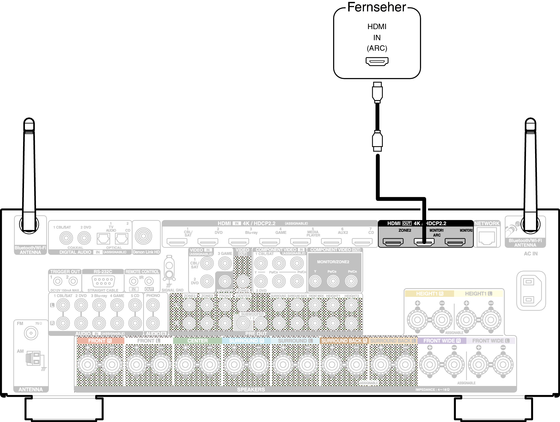 Wenn Sie die HDMI-Steuerungsfunktion verwenden, schließen Sie den Fernseher an den HDMI MONITOR 1-Anschluss an.