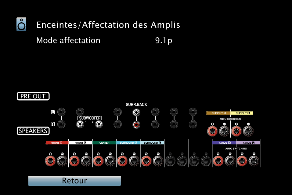 En plus des connexions décrites dans p.lien - lien, cet appareil permet diverses connections d’enceintes avec le “Affectation des Amplis” réglage.