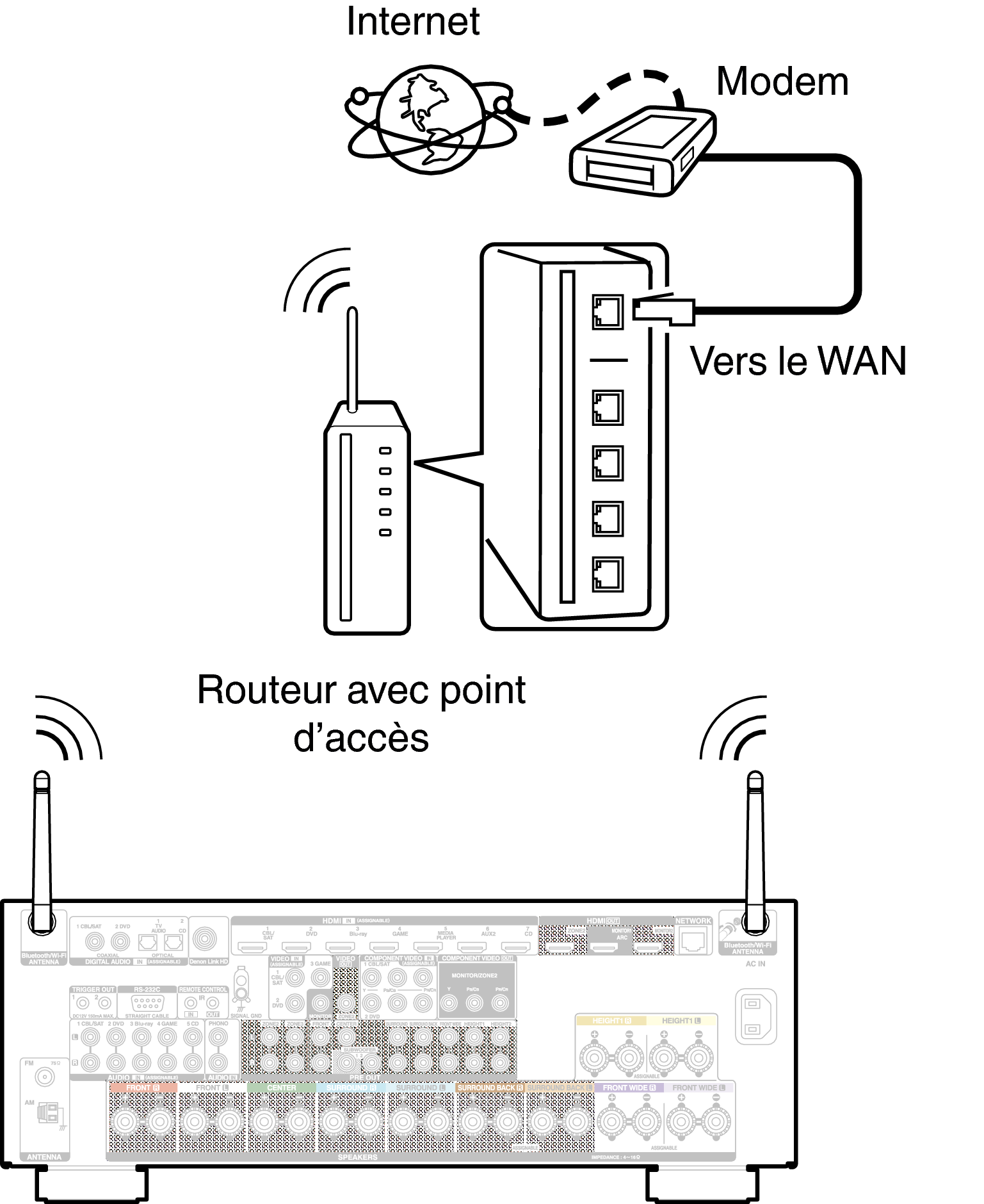En utilisant un routeur qui prend en charge la fonction WPS (Wi-Fi Protected Setup), la connexion Wi-Fi peut être réalisée facilement.