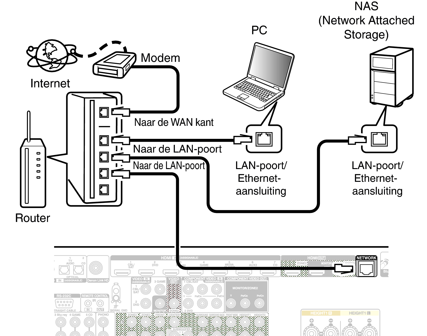 Om een verbinding te maken via een bekabeld LAN, gebruikt u een LAN-kabel voor het aansluiten van de router op dit toestel, zoals weergegeven in de onderstaande afbeelding.