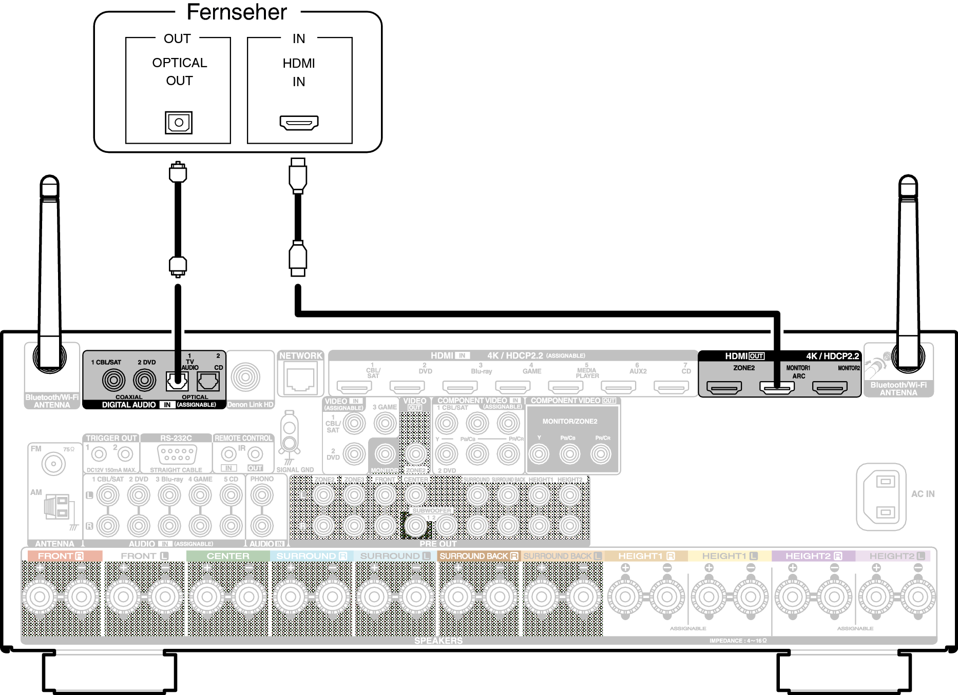 Verwenden Sie ein HDMI-Kabel, um den Fernseher an dieses Gerät anzuschließen.