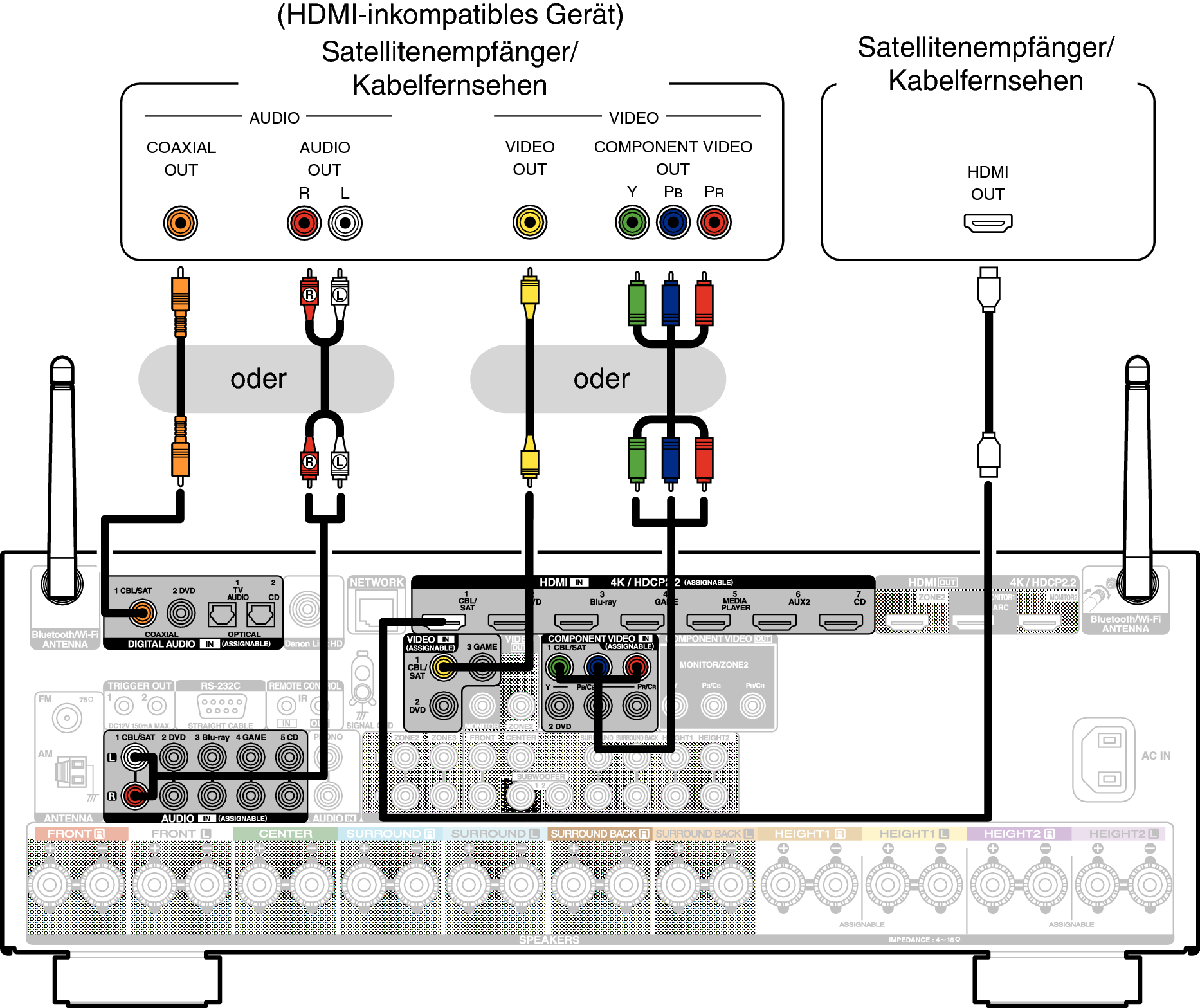 In diesem Beispiel wird der Anschluss einer Satellitenempfänger-/Kabelfernsehen-STB erläutert.