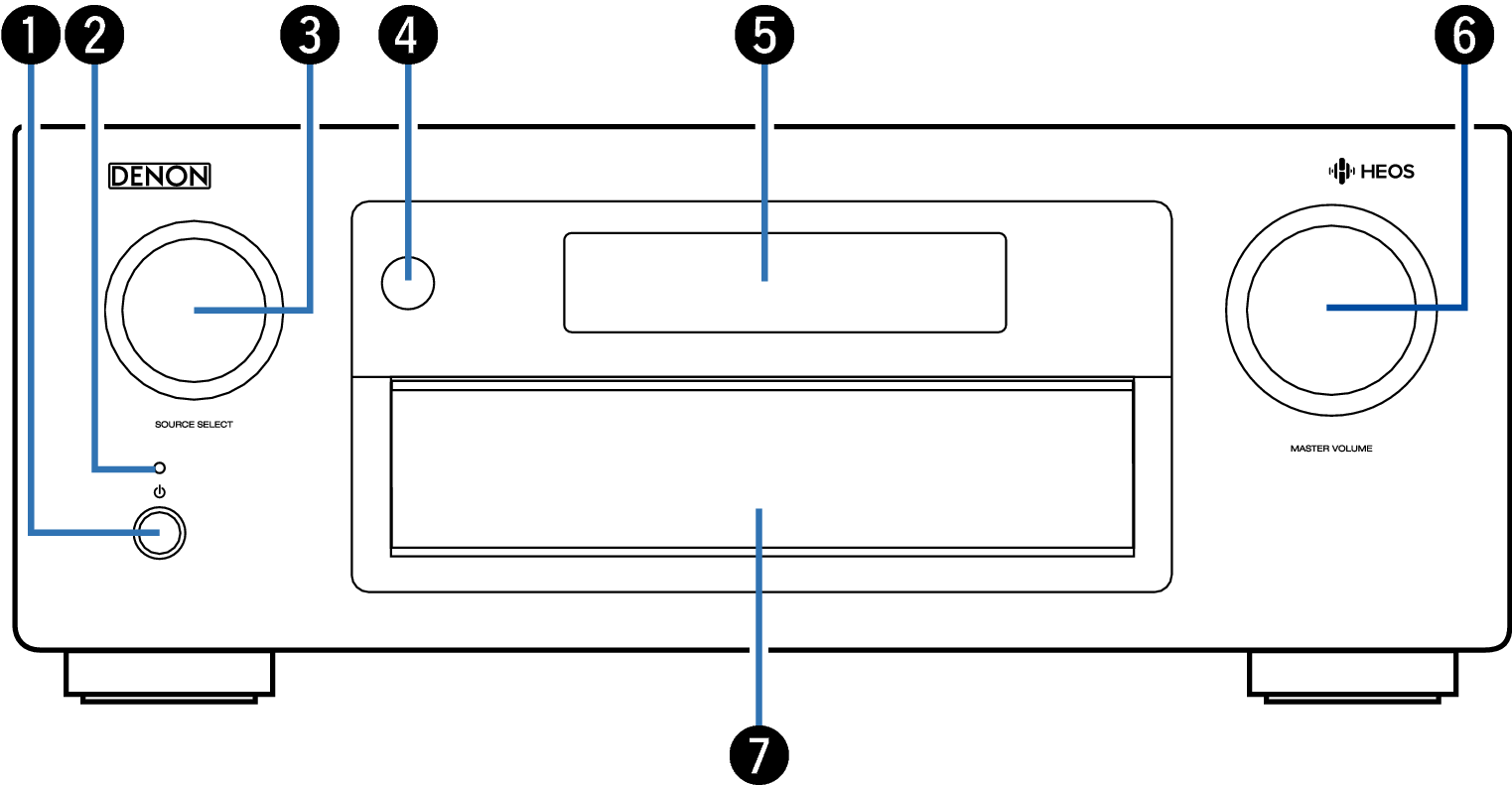 Dient zum Ein-/Ausschalten (Standby-Modus) der MAIN ZONE (Raum, in dem sich das Gerät befindet). Link