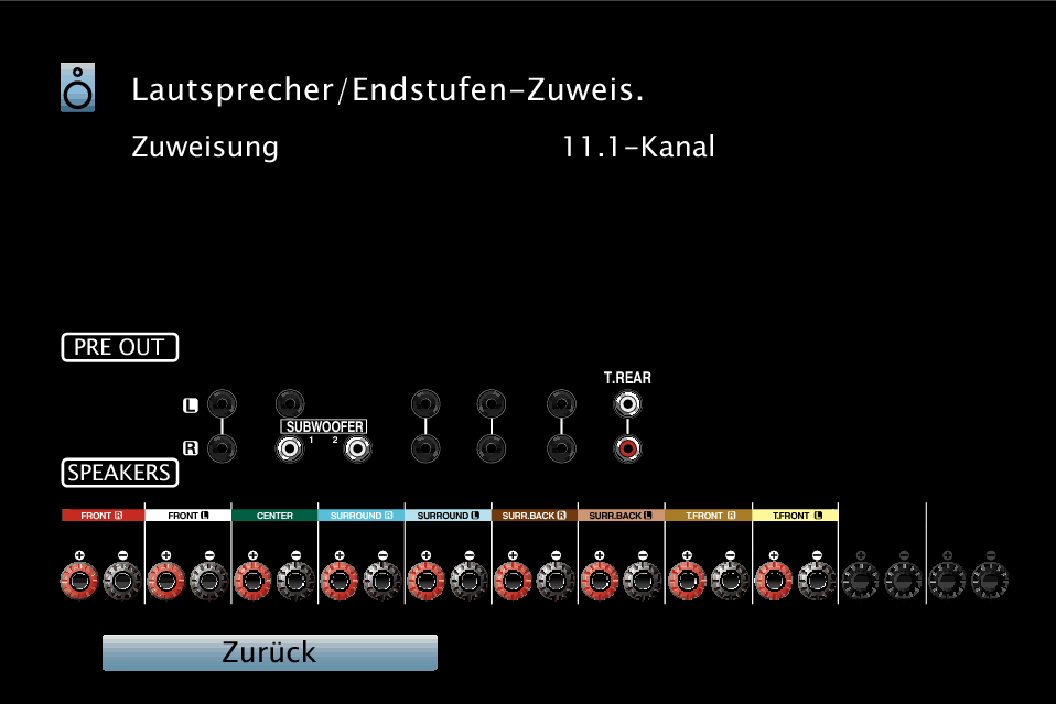 Lautsprecherkonfiguration und Einstellungen für “Endstufen-Zuweis.”