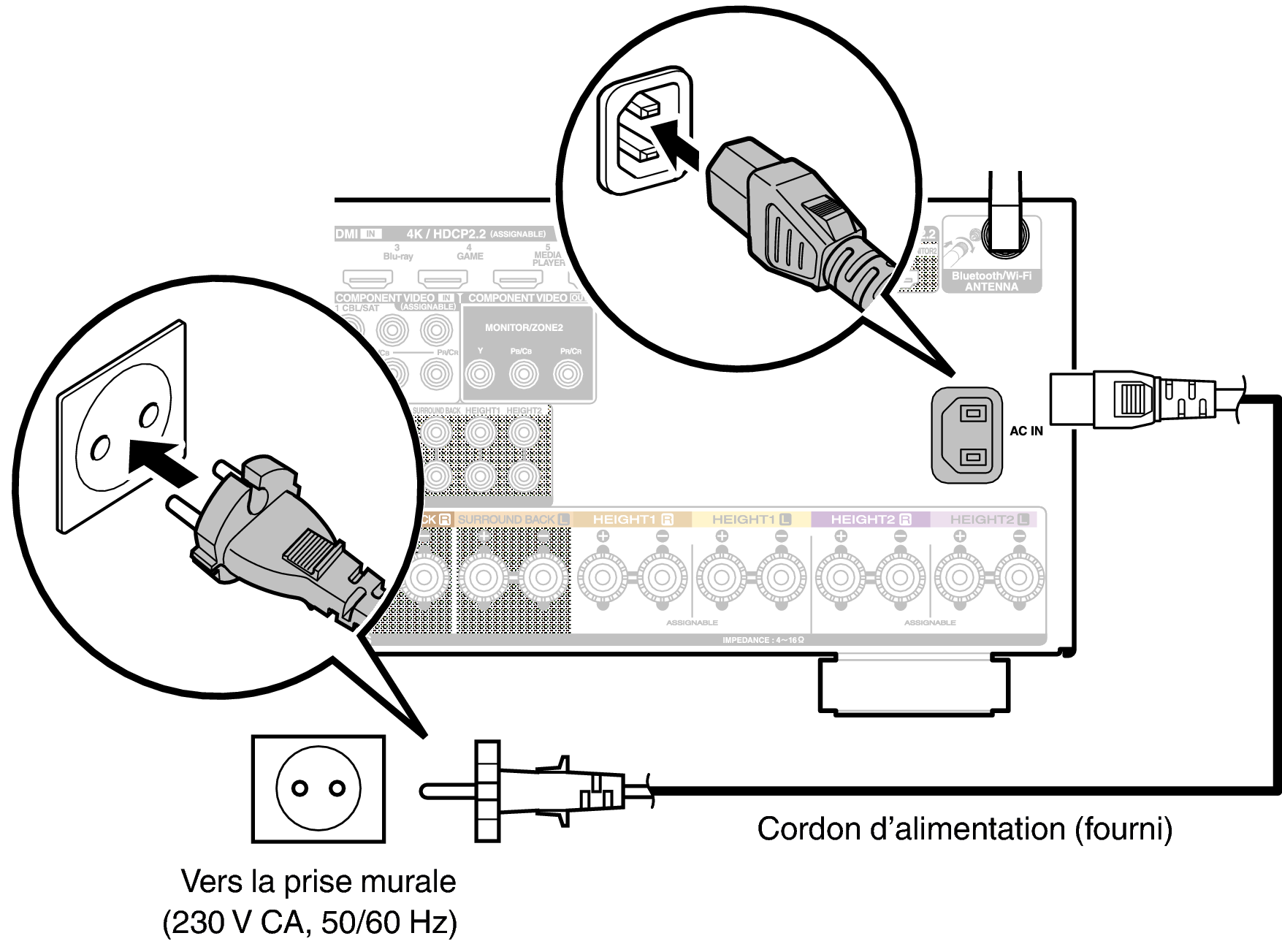 Une fois toutes les connexions effectuées, insérez la fiche d’alimentation dans la prise murale.