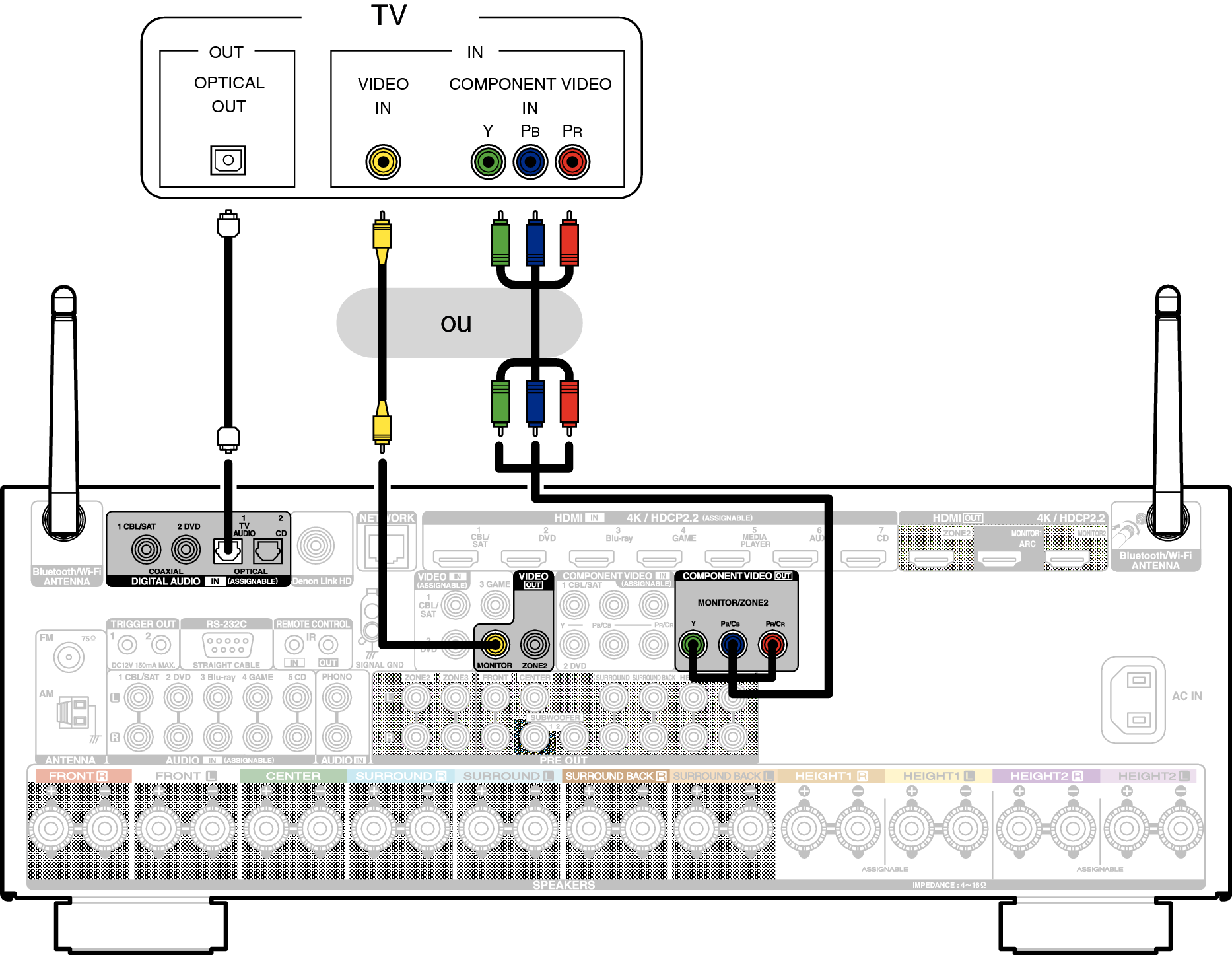 Utilisez un câble vidéo composante ou un câble vidéo pour connecter le téléviseur à cet appareil.