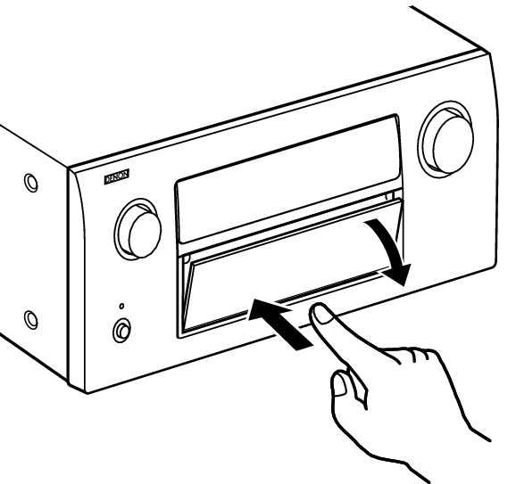 Lorsque vous utilisez les touches et/ou les bornes derrière la porte, appuyez sur le bas de la porte pour l’ouvrir. Faites attention à ne pas coincer vos doigts lorsque vous refermez la porte.