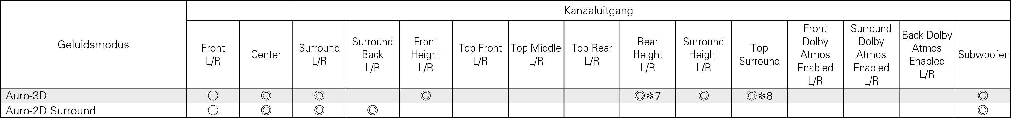 Dit wordt uitgevoerd als een Auro-3D-signaal wordt ingevoerd en het ingangssignaal Boven surround bevat.