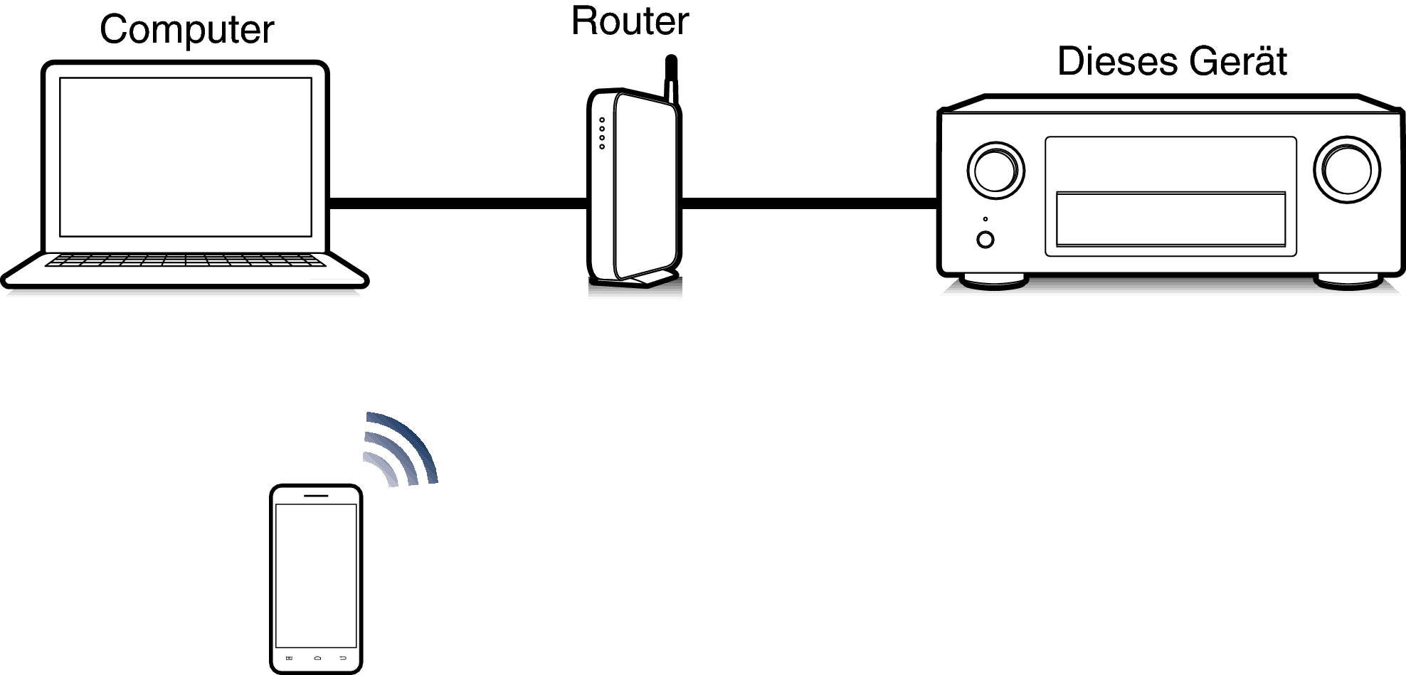 Auf einem iPhone, iPod touch, iPad oder in iTunes gespeicherte Musikdateien können über das Netzwerk wiedergegeben werden.