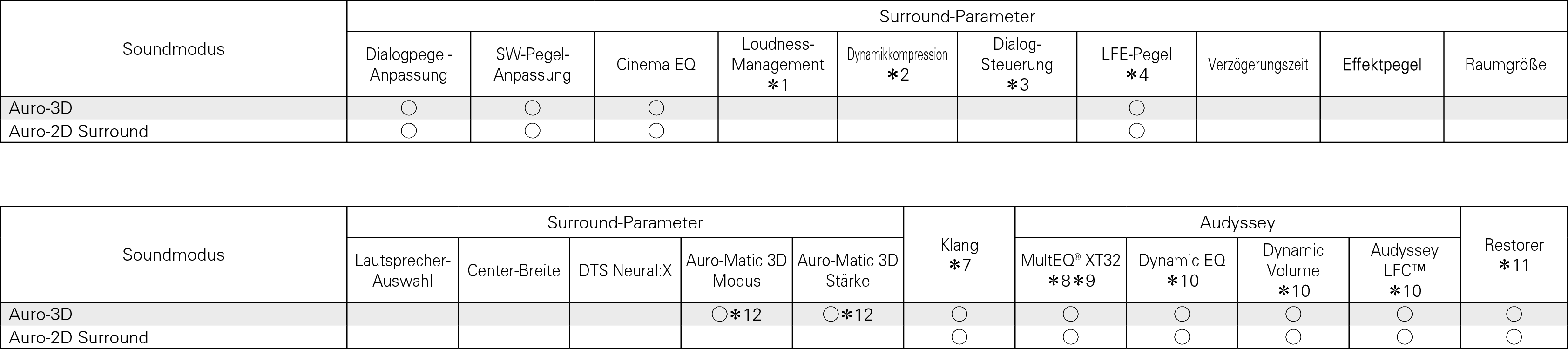 Diese Einstellung kann nicht vorgenommen werden, wenn die Audyssey®-Einmessung (Lautsprecherkalibrierung) nicht ausgeführt wurde.